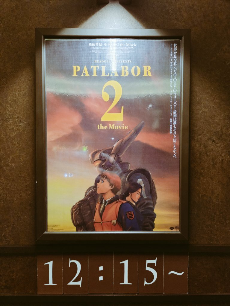 【機動警察パトレイバー2 the Movie】 劇パト1、2と連続で4Kリバイバル上映はほとんどの劇場で本日までの上映となりました。 お楽しみ頂けたでしょうか? 31日以降は関東圏の一部劇場のみでの上映となります。