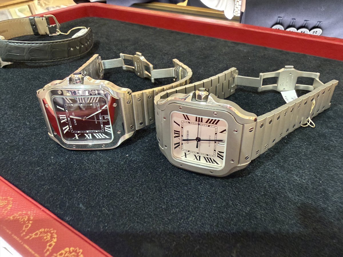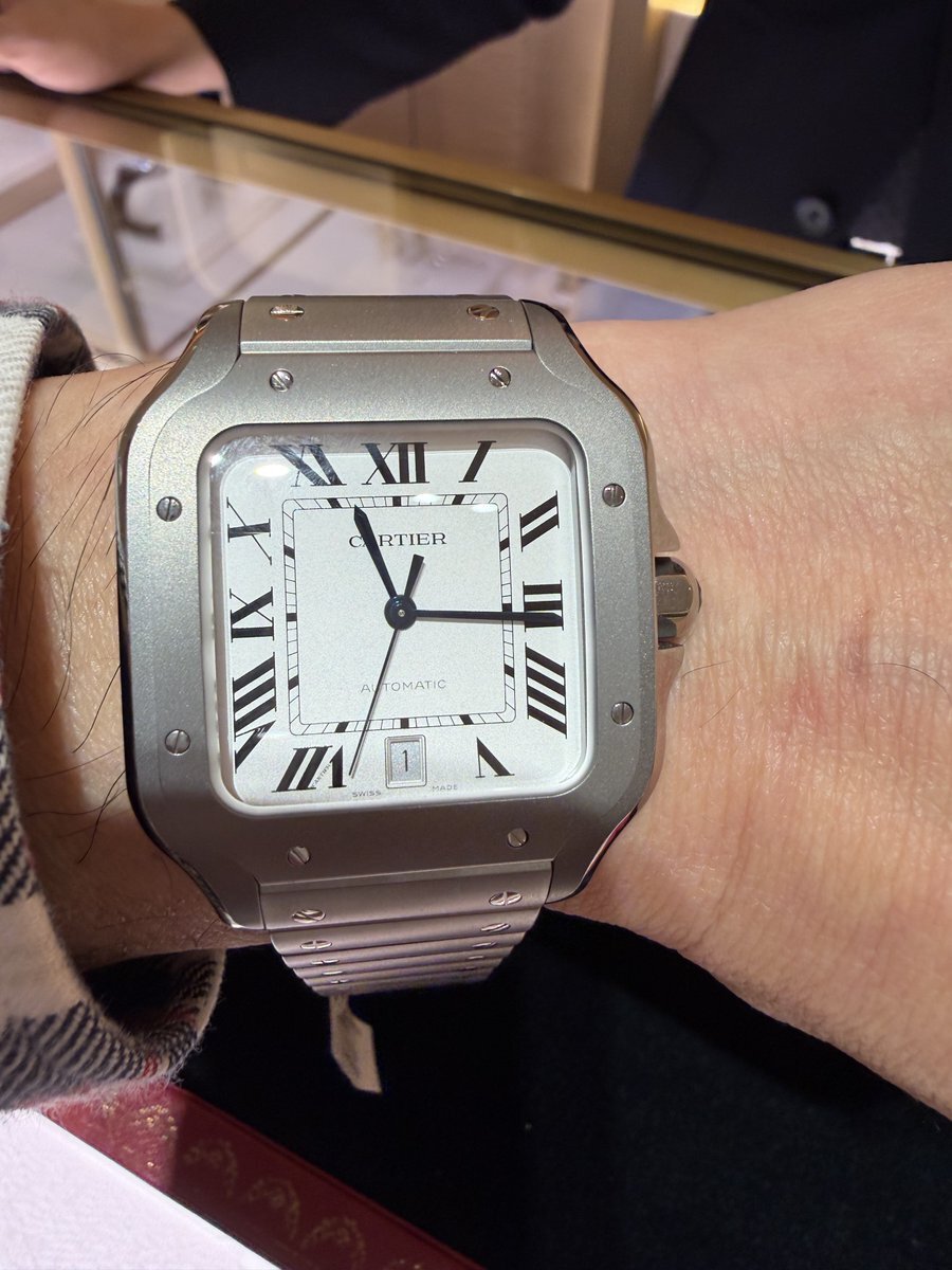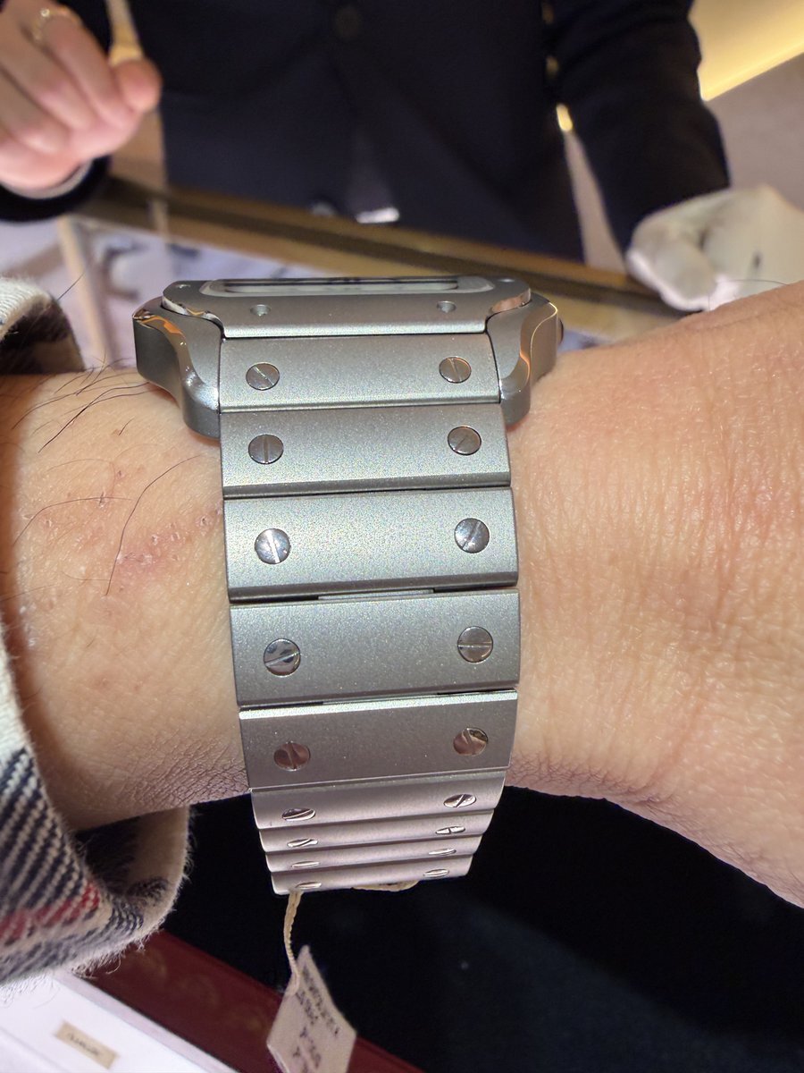 金属アレルギー持ちなので、オールチタン製で今月発売したサントスを見にブティックへ✨️う〜ん…これでデュアルタイムであれば完璧なんだけどなぁ〜 #Cartier #カルティエ #サントス #機械式腕時計 pic.x.com/hdiiDjuoEB