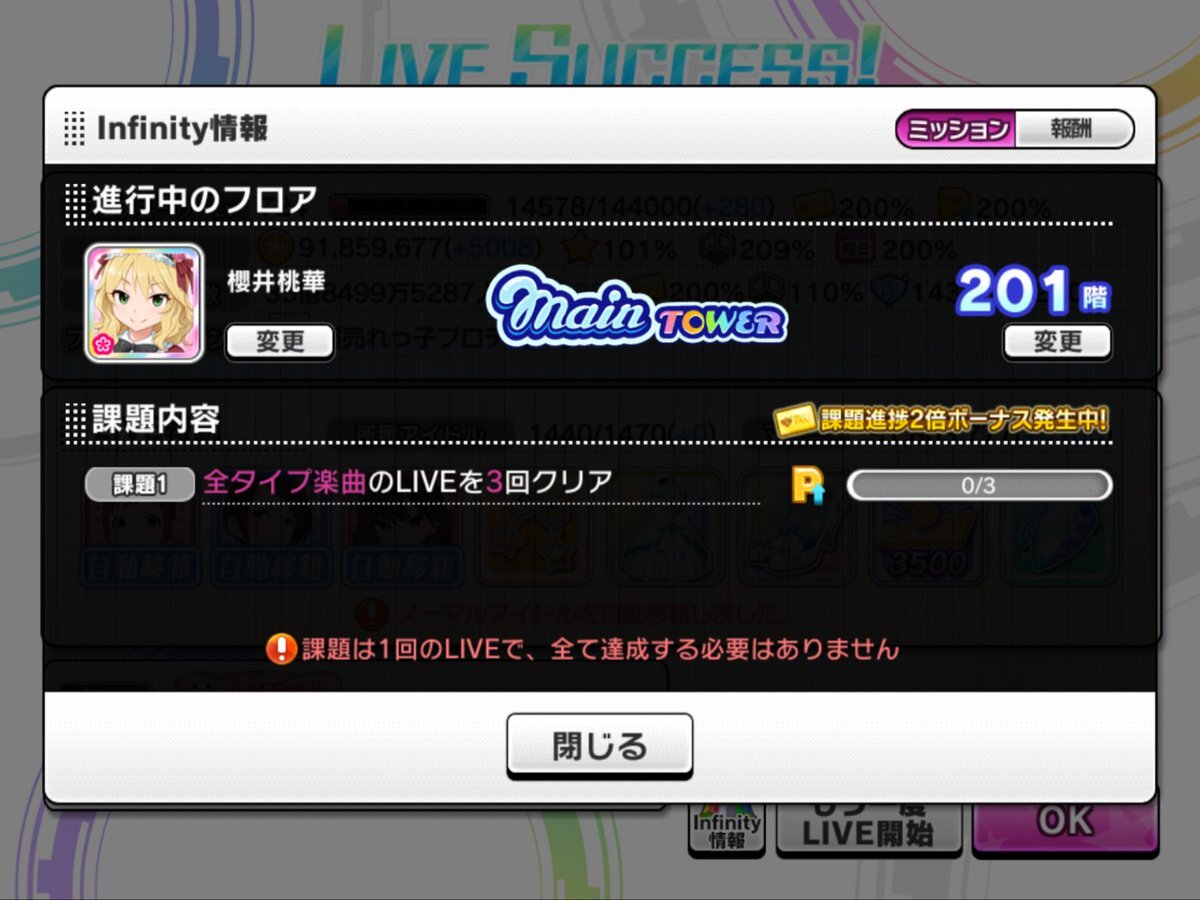 桃華登頂〜 8人目です。やっとマイスタに特技を設定していろんなことが出来てきてます TreasureのMas+をやり始めていますが、 巻込みむずすぎ、350万を目標に覚えているが大変 4、9、12秒と秒数が違うので何箇所あるのか。 次は、途中までやっていた日菜子で、29階からで #櫻井桃華 #喜田日菜子 pic.x.com/XTkvNhzv9D