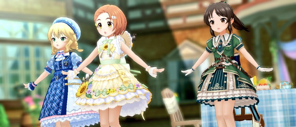 おはようございます🌻 今日は橘ありすちゃんと櫻井桃華ちゃんがゲストです。 #デレステスクショ朝の1枚 #龍崎薫 #橘ありす #櫻井桃華 #かおるのカラフルクッキング pic.x.com/r99zOGg7Qu