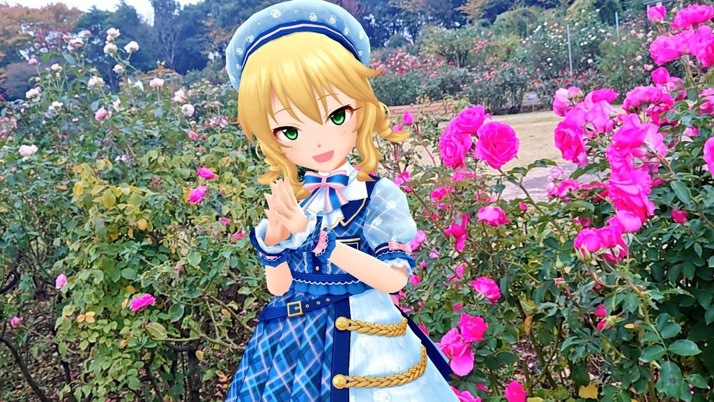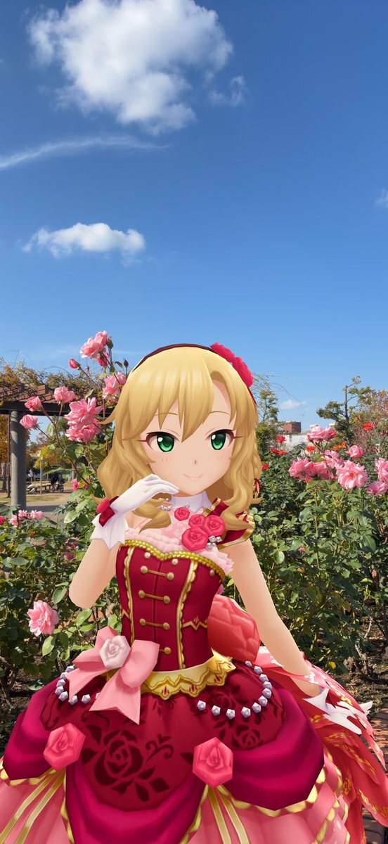 今日はいい色の日ですね! 先日訪れた京成バラ園では様々な色の薔薇を桃華ちゃまと楽しみました🌹 #櫻井桃華 #デレスポAR #デレステAR pic.x.com/UU1sGyNtwq