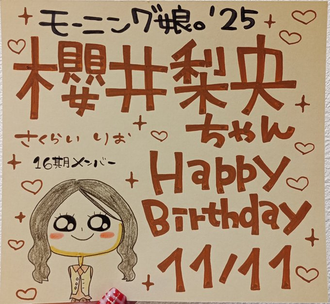 【#モーニング娘25】 \\🤎🎂#櫻井梨央誕生祭🎂🤎// 本日11/11は16期メンバー #櫻井梨央 ちゃんのお誕生日です🎂 おめでとうございます🤎🧋 らいりーにとってステキな1年になりますように⭐️ #櫻井梨央生誕祭 #ハロプロ #morningmusume25 pic.x.com/2zPlbTPi7V