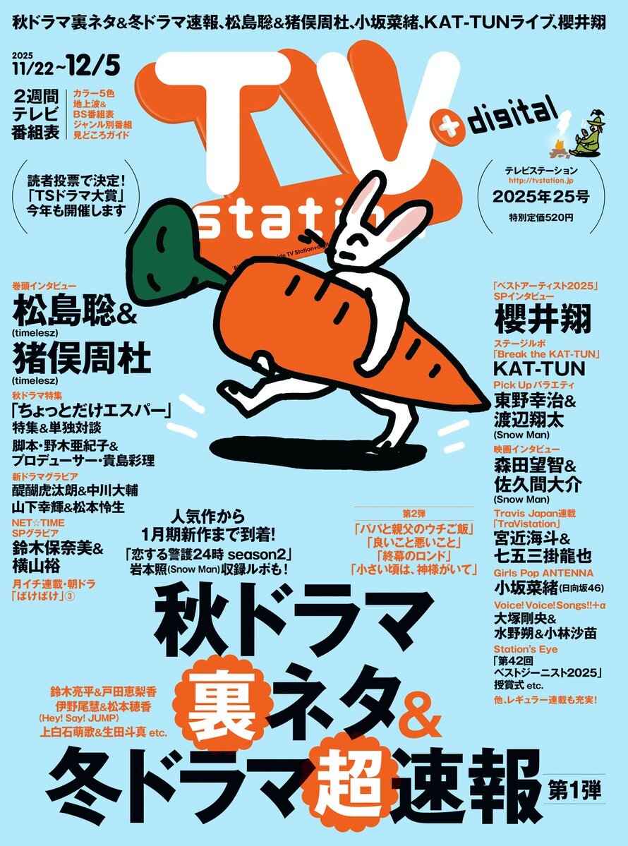 TVstation25号①【11/19発売】 秋ドラマ裏ネタ&新ドラマ速報 巻頭グラビア❄ #松島聡 & #猪俣周杜 (#timelesz) #パパと親父のウチご飯 巻末グラビア❄ #櫻井翔 #ベストアーティスト2025 #森田望智 & #佐久間大介 (#SnowMan) #ナイトフラワー #東野幸治 & #渡辺翔太 (#SnowMan)