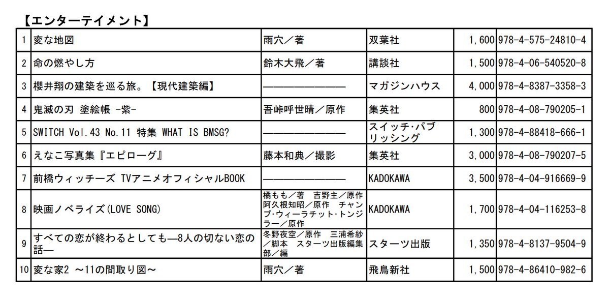 株式会社トーハン|ベストセラー tohan.jp/bestsellers/20… ◆ 月間ベストセラー ランキング(2025年10月期) 【エンターテイメント】 ✨ 3位 ✨ 『櫻井翔の建築を巡る旅。【現代建築編】』 出版社:マガジンハウス #櫻井翔の建築を巡る旅 #櫻井翔 pic.x.com/f6zmOO8UzU