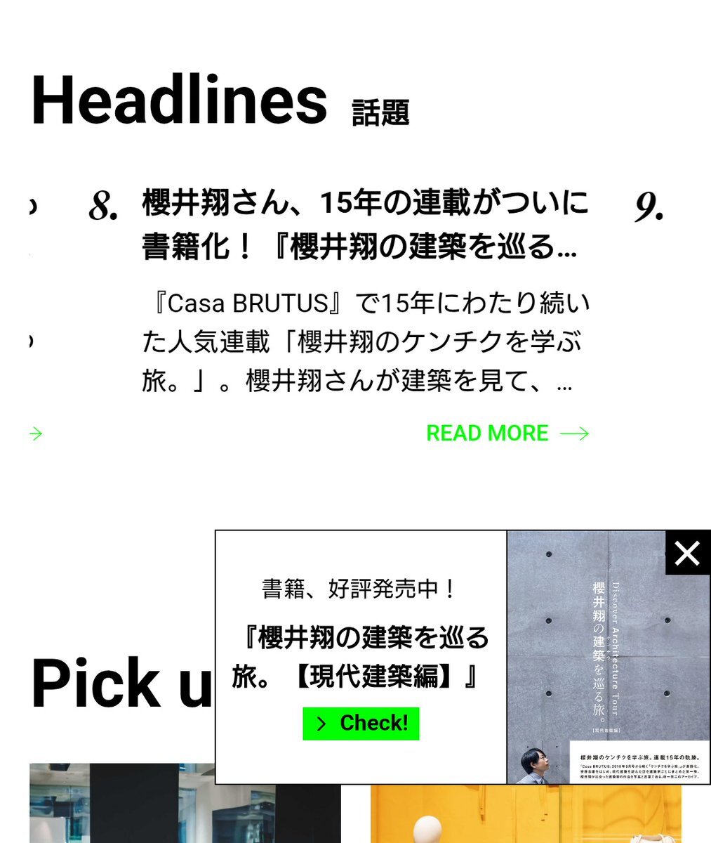 Casa BRUTUS casabrutus.com Headlines 話題:8位 ✨ 櫻井翔さん、15年の連載がついに書籍化! 『櫻井翔の建築を巡る旅。【現代建築編】』発売。 Casaさんの公式サイトで「書籍、好評発売中!」のポップアップ広告を展開して下さっています ✨ #casabrutus #櫻井翔の建築を巡る旅 #櫻井翔 pic.x.com/4uak11dGgS