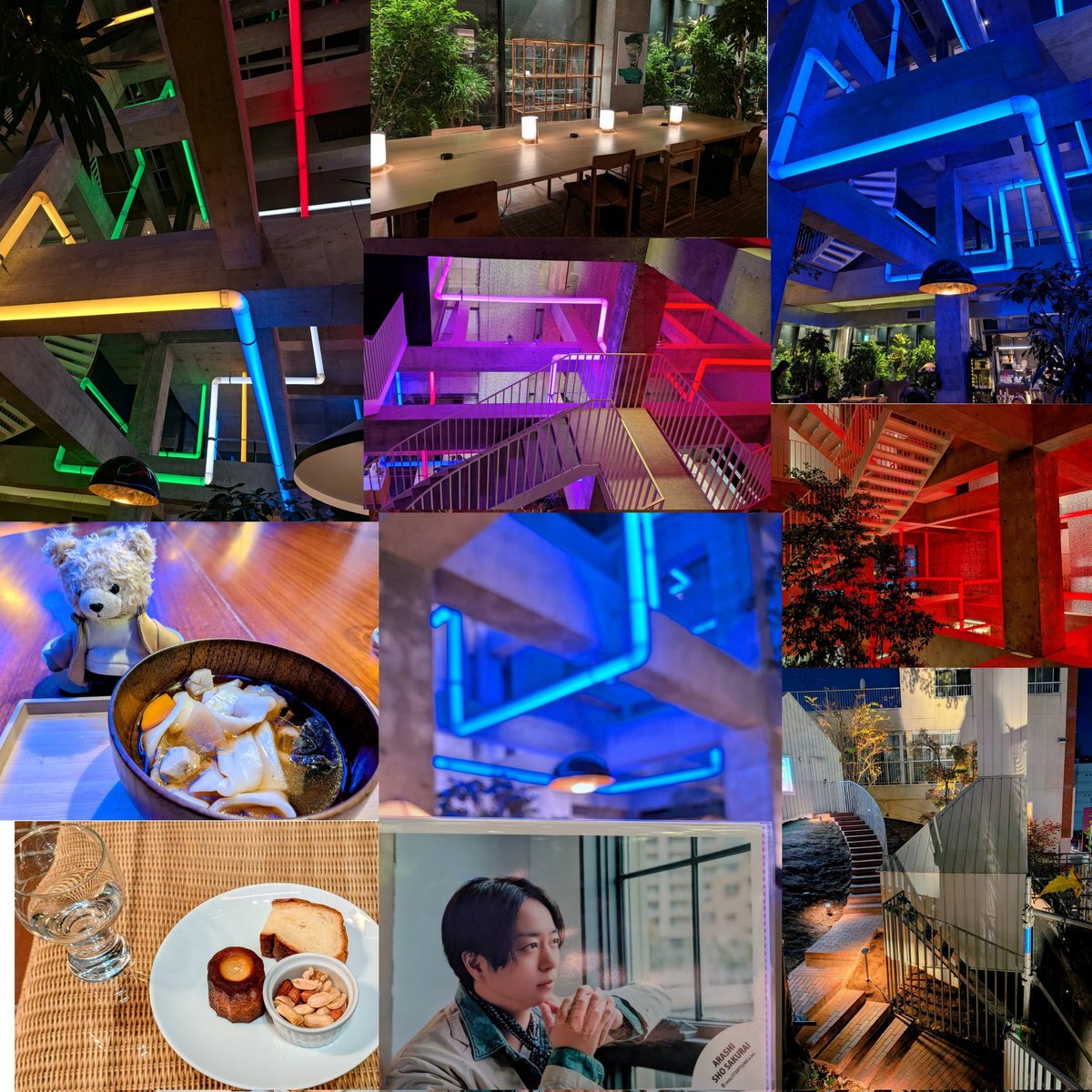 群馬③ 17時からラウンジで宿泊者特典でフリードリンクと軽食が自由にいただけます 夜食に郷土料理の"おきりこみ"も 21時からは館内の配管がライトアップされるので 皆ラウンジに集まりお酒を飲みながら この幻想的な景色を楽しんでいました Casaで翔くんがいたバーは金土のみ #櫻井翔の建築を巡る旅 pic.x.com/dMfyWSz3yI