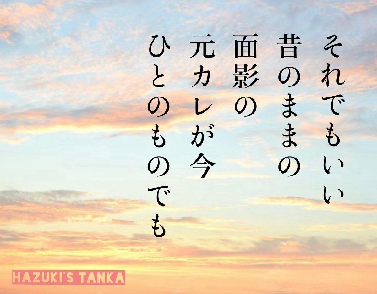 #短歌 #tanka #次世代文学 #元カレ元カノをテーマに作品をつくる それでもいい 昔のままの 面影の 元カレが今 ひとのものでも pic.x.com/YqzhTu483R