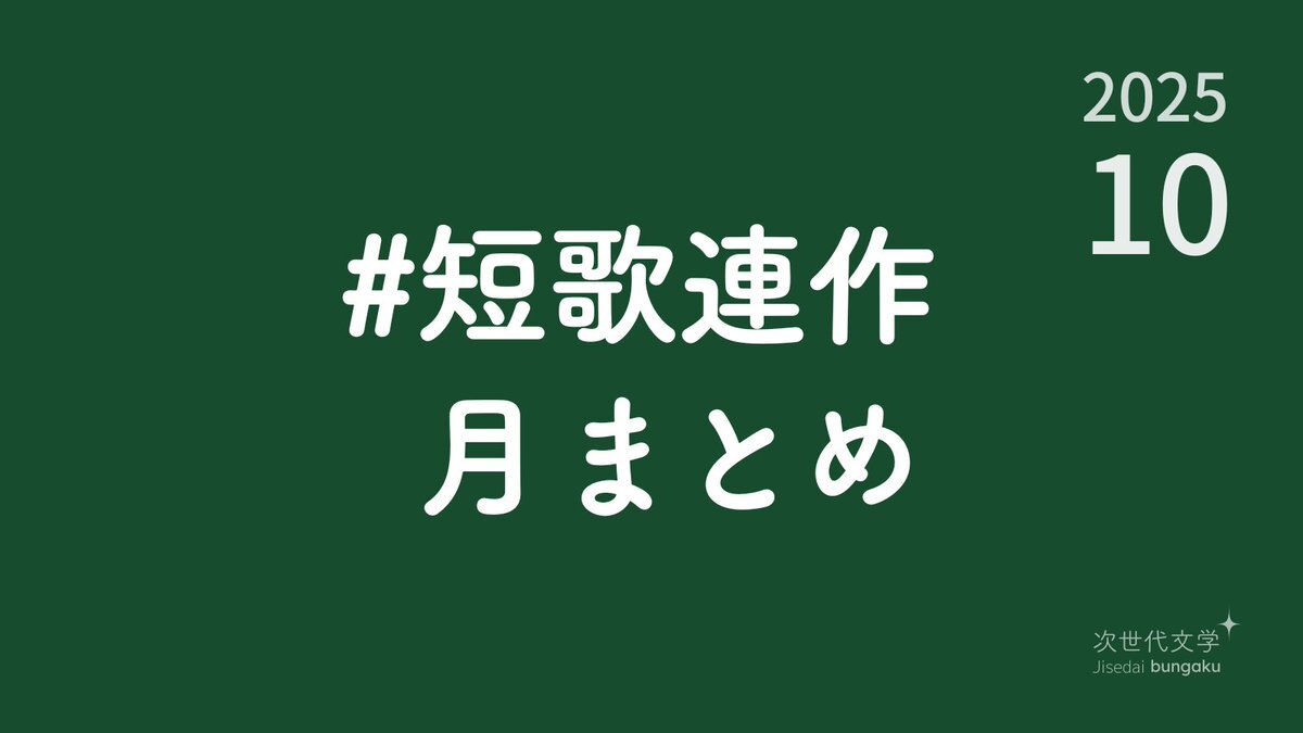 【10月-短歌連作月まとめ】 みなさんが10月につくった連作をこのポストへの返信または引用リポストで共有してください ハッシュタグは「 #短歌連作月まとめ 」です Webでの投稿もお待ちしています blog.kotobadia.com/2223 #短歌 #次世代文学