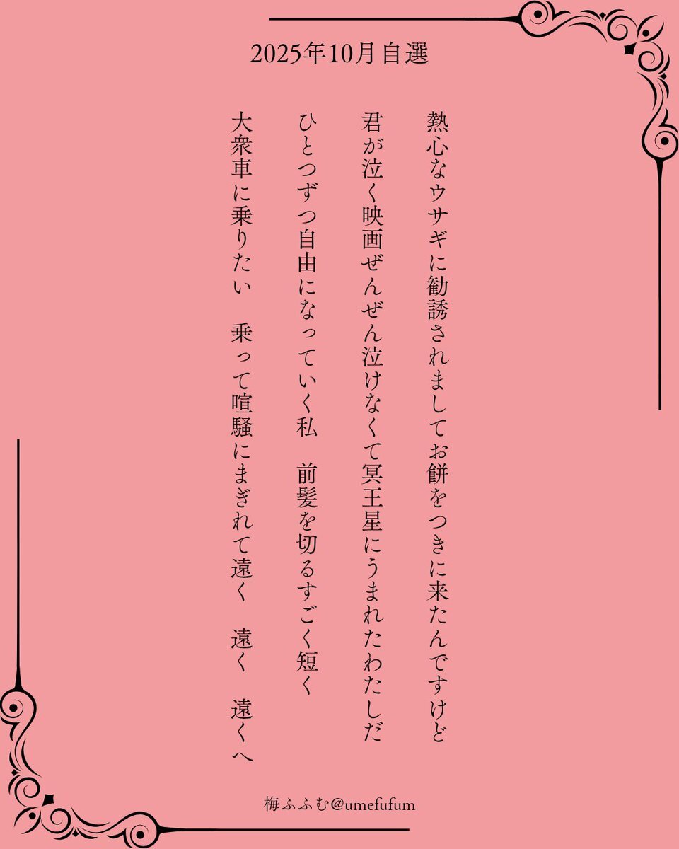 10月の自選です。すべりこみ! 読んでもらえたら嬉しいです🐾 #自選短歌月まとめ blog.kotobadia.com/2223 #短歌 #次世代文学 pic.x.com/GdLJWor1UV x.com/tankazine/stat…