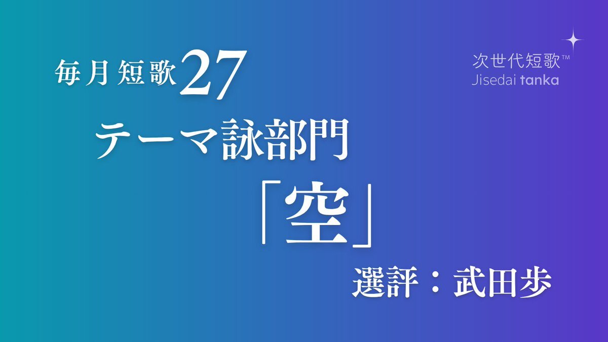 毎月短歌27・テーマ「空」部門、武田歩さん選の発表です jisedaitanka.theletter.jp/posts/06406750… #短歌 #毎月短歌 x.com/tankazine/stat…