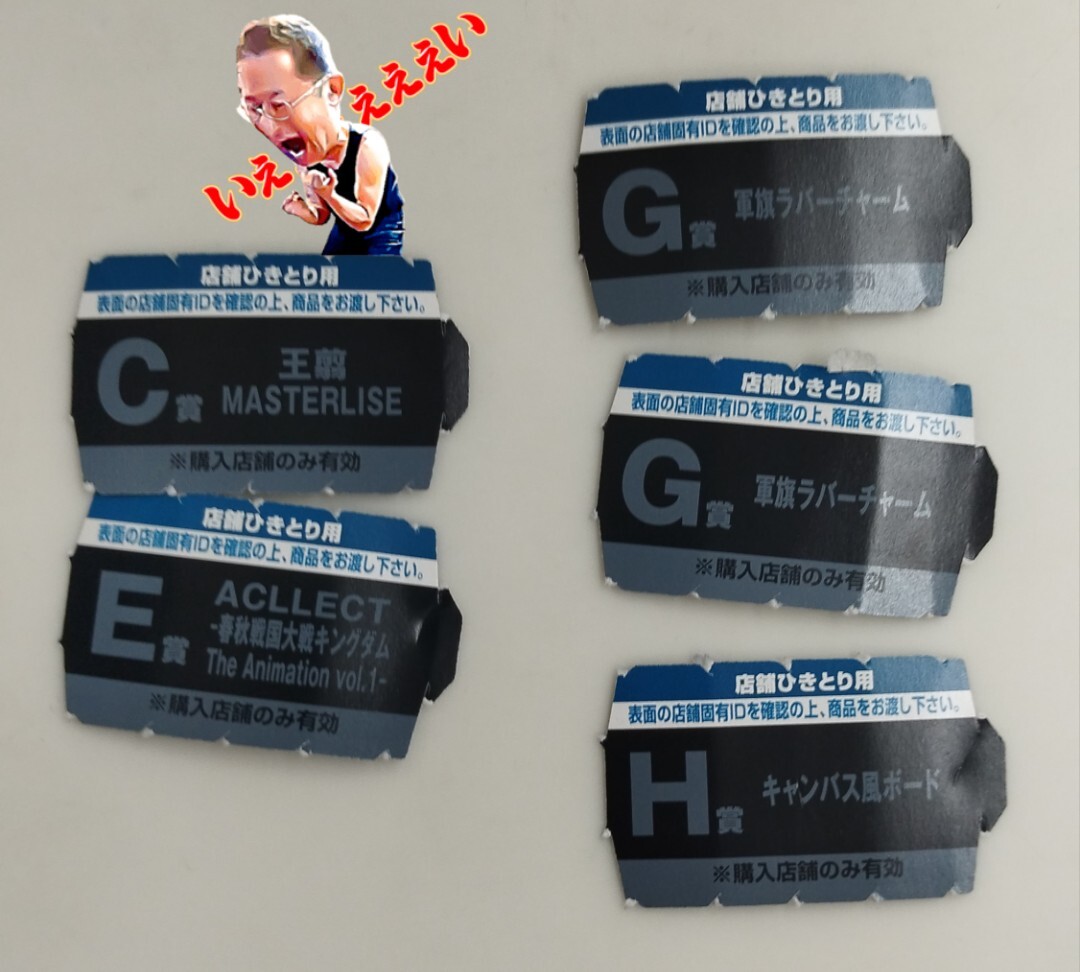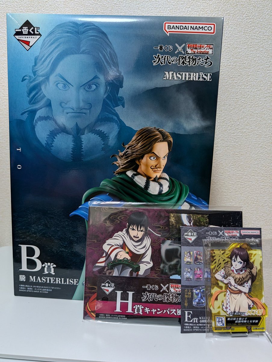 昨日販売開始になった、キングダムの一番くじを引いてきやした! そしたら。。。。ゲットできやしたーー! 7分の2の確率は申し分ないでしょ(^_^)v #キングダム #一番くじ #次代の傑物たち pic.x.com/tX2QUY3lTY