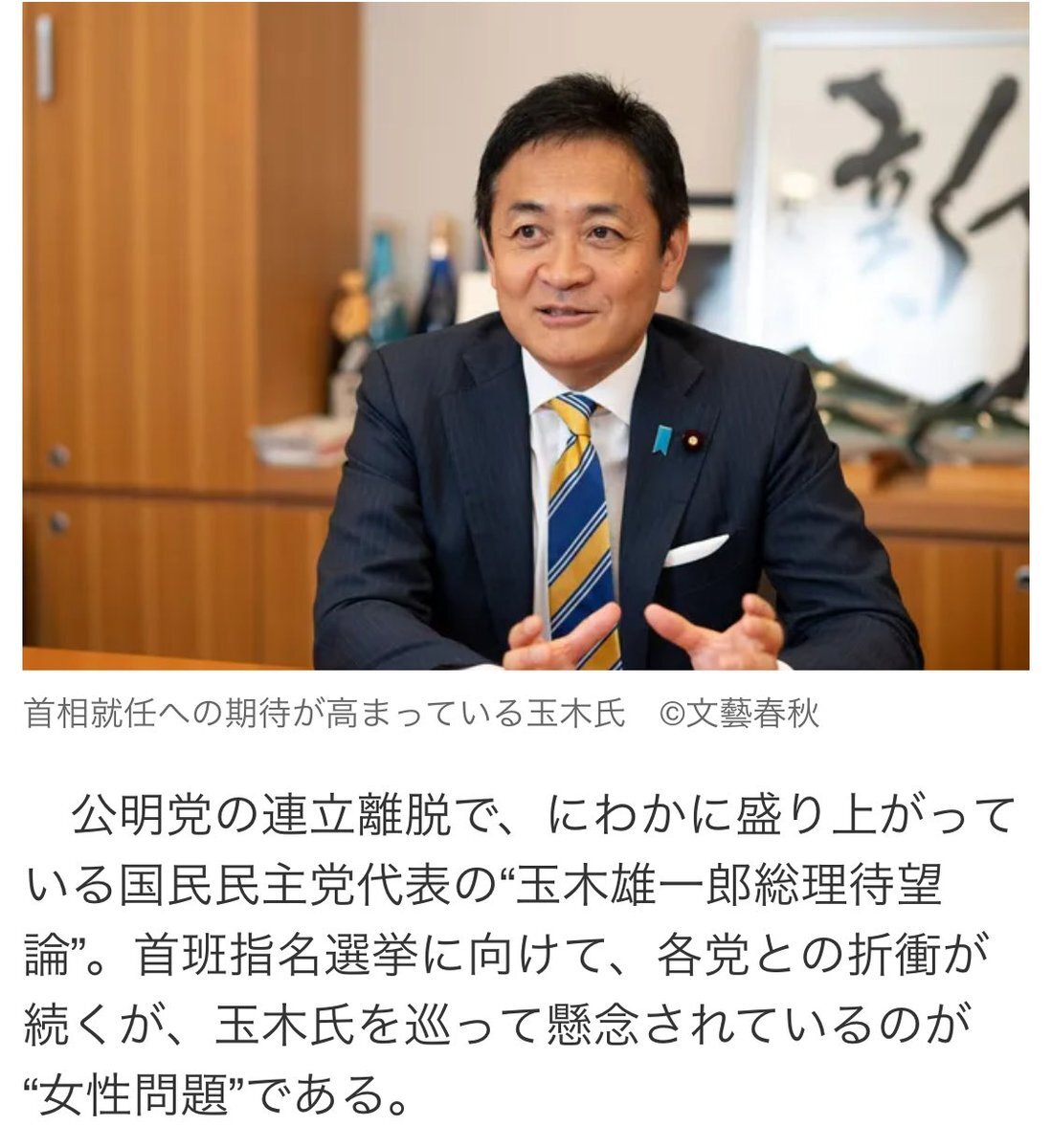 そう言う事か。やっと理解できた。タマキも次期総理になれる可能性がでてきたのかな?でも浮気してたし信用できない。中国とかのハニートラップにかかりそう。 #自民党 #公明党 #国民民主党 #次期総理大臣