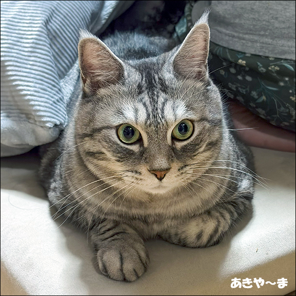 クウ♂️、コタツに半分入る(流石にまだ電源は入れてません) 👩ママさんにピッタリくっついてご満悦😙 「いい場所確保したのニャ~😺」 良かったね~🎵 ゆっくり自分の時間を過ごしてね✨✨ #猫好きさんと繋がりたい #マンチカン #サバトラ #次男 # #我が家生まれ pic.x.com/hyTffMqafQ