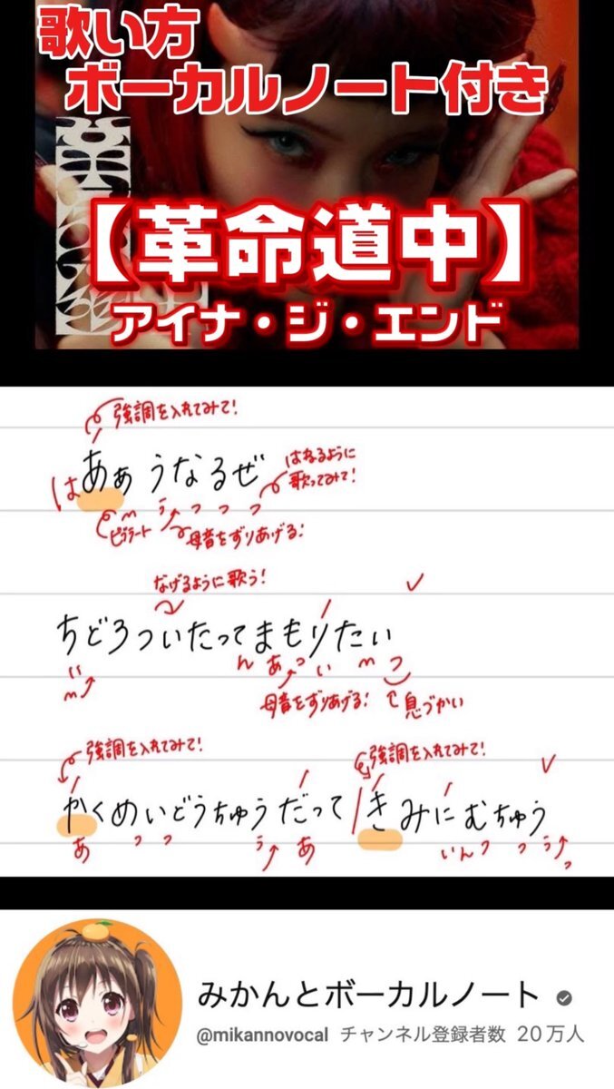 #みかんとボーカルノート #歌が上手くなる方法 #革命道中 #アイナジエンド #ダンダダン #CDTVライブライブ 月間ランキングTOP50 で話題の曲 #みかん先生 がオケありで 👻『ダンダダン』🛸第2期の オープニングテ ーマ曲 革命道中/アイナジエンドを 🎤歌ってみました 🎧🎶ぜひ聴いてみてください🍊 x.com/mikannovocal/s…