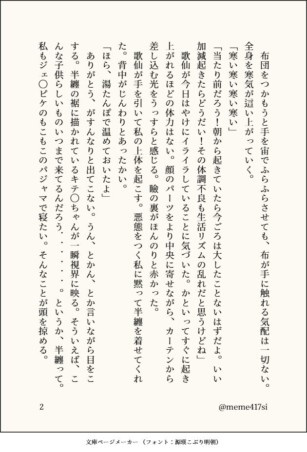 【歌仙兼定】きみは変わらない【女審神者】 | 青井そら #pixiv pixiv.net/novel/show.php… 「かぼちゃ大作戦」お疲れさまでしたの回です。 半固定の初期刀が歌仙さんの明るく元気な女審神者の掌編です。 #歌さに といいながら、保護者×お転婆の構図から抜け切れていないのが、この主従ならではです。