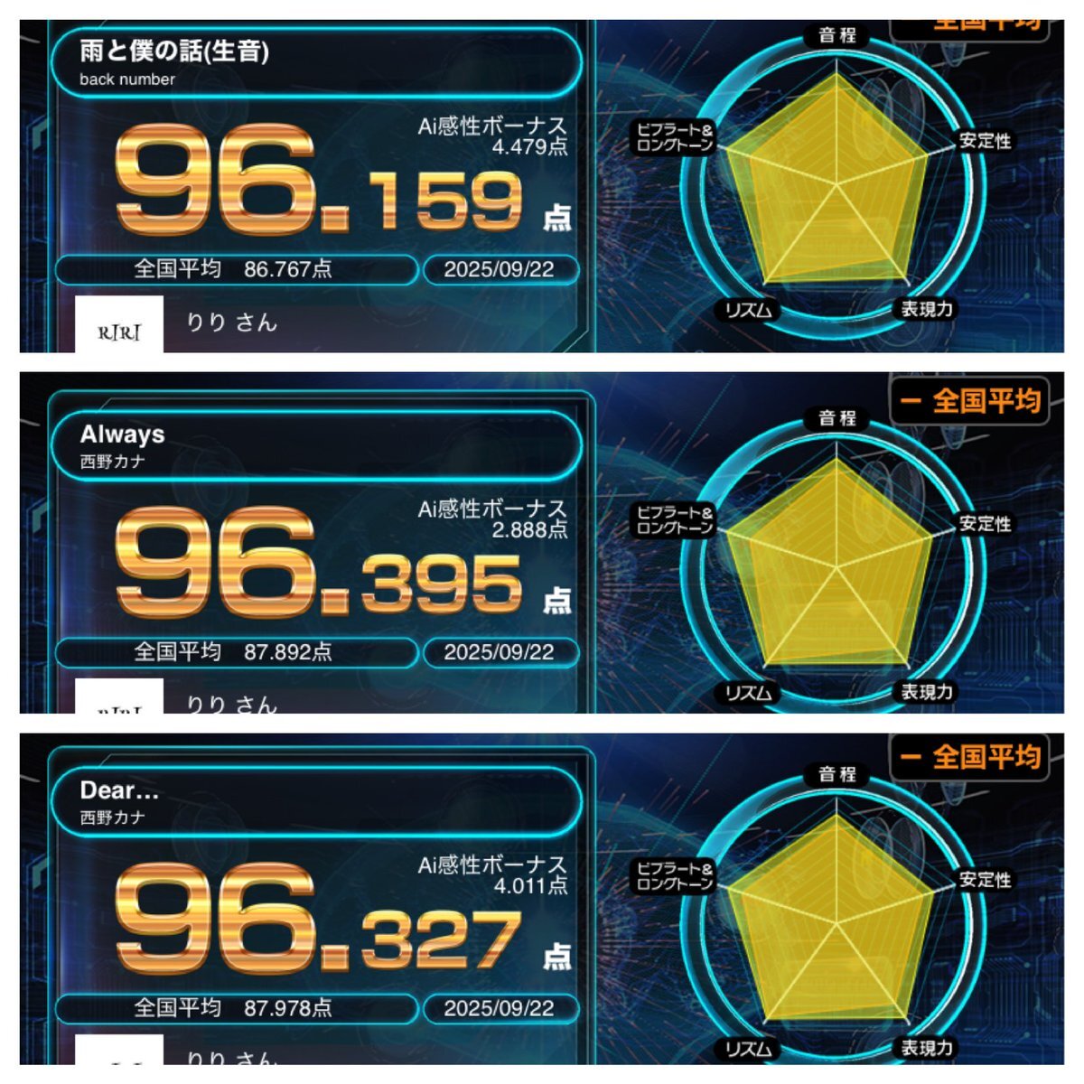 なかなか97点が越えられないんだよなぁ 息続かないし、ビブラートも安定しないから、課題はそこかなぁ あ、初公開の生声なので消すかもしれませんが良かったら聴いてくださいっ 犬飼ってる方には染みる「レオ」です😂 🚨音量注意 #カラオケ #LIVEFDAM #精密採点 #歌好き #歌好きさんと繋がりたい pic.x.com/6PlCibwnRC