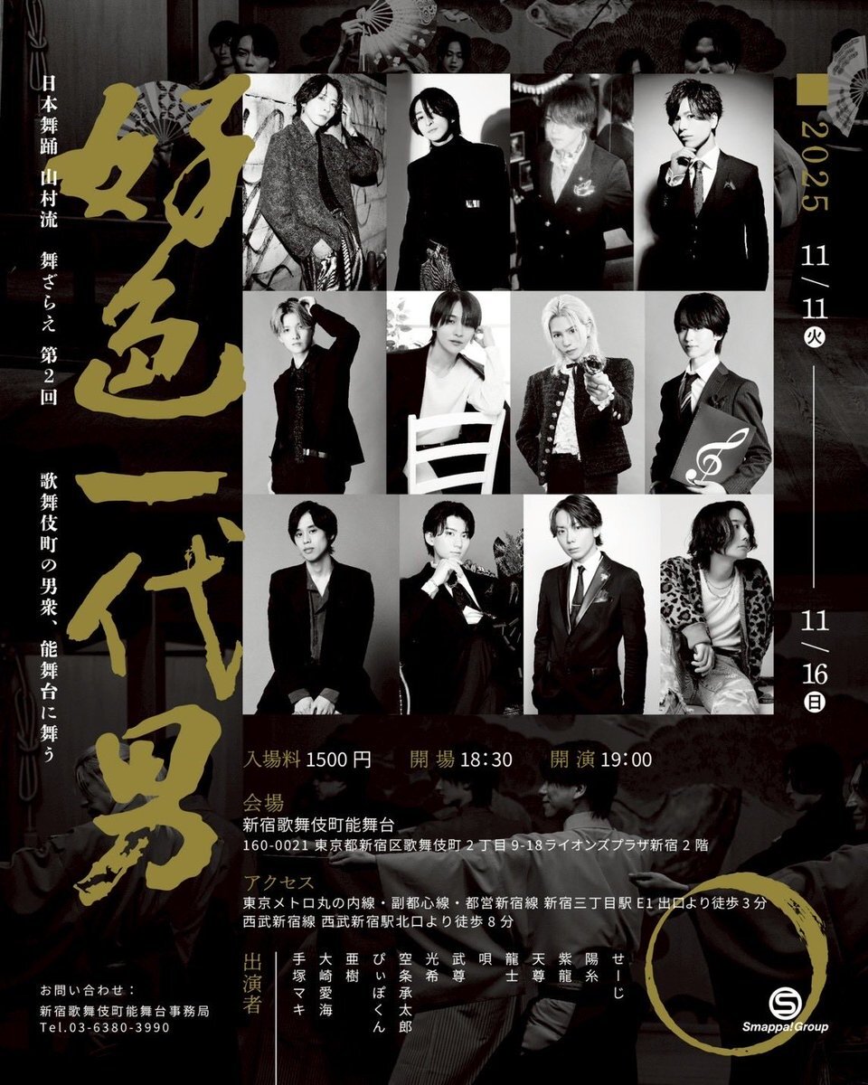 第2回「好色一代男」日本舞踊 山村流 舞ざらえ 開催決定 山村若静紀先生の指導のもと、 今回も歌舞伎町の男衆が舞います。 🗓️2025年11月11日(火)〜16日(日) 各日19:00開演 会場:新宿歌舞伎町能舞台 🎫1500円 チケットURL peatix.com/event/4623977