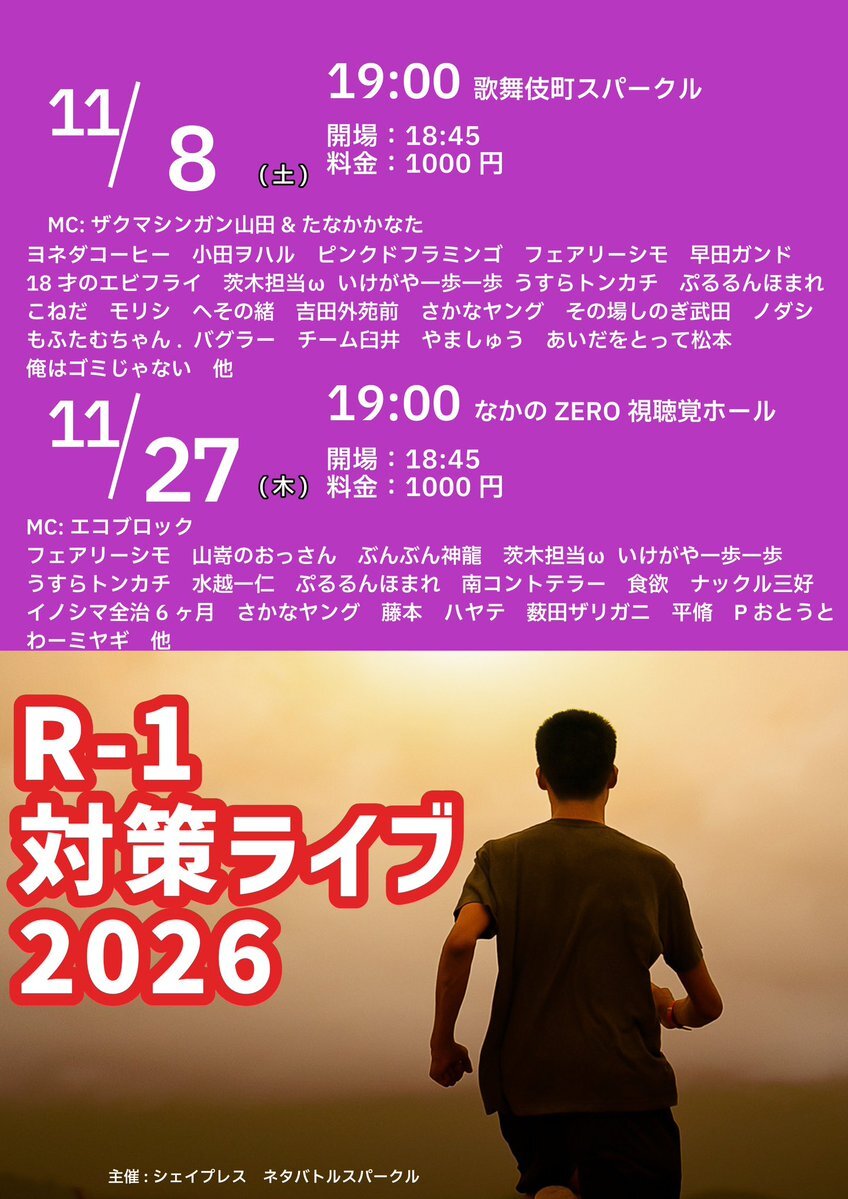 明日はR-1対策ライブに出演します!!明日も全力で頑張ります!!お客様のご来場お待ちしております🙇‍♂!! #ぷるるんほまれ #お笑いライブ #R1対策ライブ #歌舞伎町Sparkle   x.com/sparklelive99/…