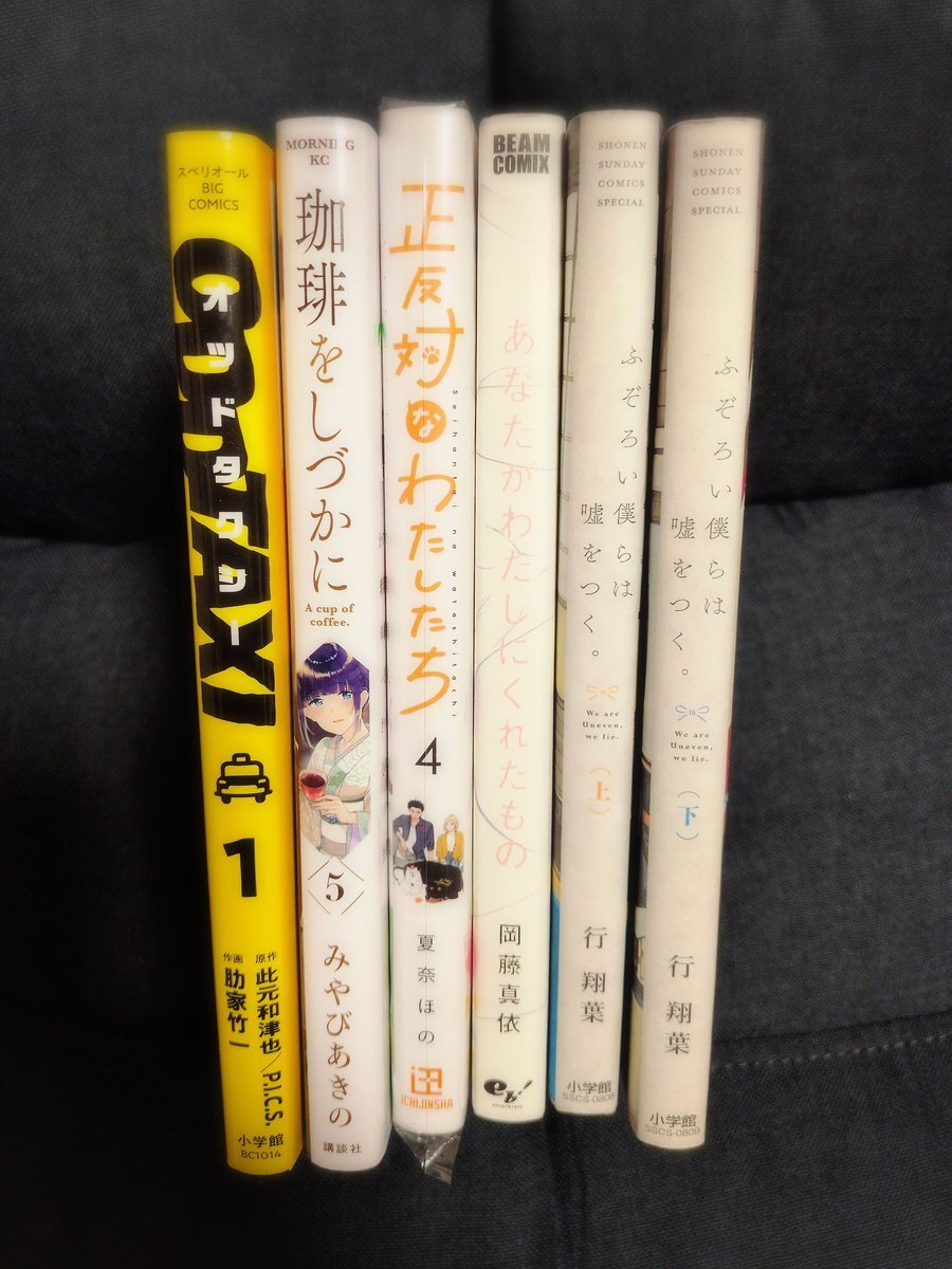 #今日買った漫画 #オッドタクシー #珈琲をしづかに #正反対なわたしたち #あなたがわたしにくれたもの #ふぞろい僕らは嘘をつく 全てブックオフで購入しました。 pic.x.com/SqkMfDdj9B