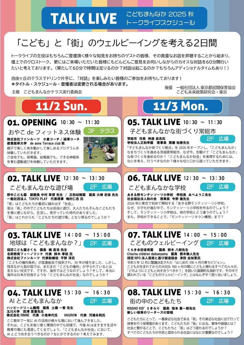 #こどもまんなか2025秋 TALK LIVE 「こども」と「街」の #ウェルビーイング を考える2日間 当学園の理事長 #齋藤祐善 と #正和幼稚園 園長 #大崎志保 が登壇します🎤 🗓11/2(日) 「こどもまんなか遊び場」 登壇:大崎志保 🗓11/3(月・祝) 「子どもまんなかな街づくり常総市」 登壇 齋藤祐善 #自由が丘 pic.x.com/ojdJLhytVp