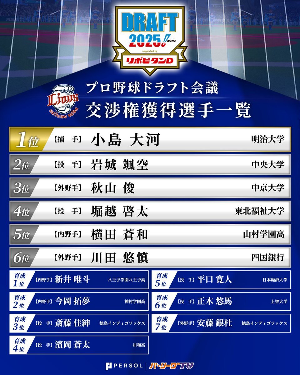 レオレポ ~ 意中の強肩強打捕手をドラ1獲得! blog.livedoor.jp/dandy_u/archiv… #埼玉西武ライオンズ #seibulions #ドラフト #小島大河 #堀越啓太 #今岡拓夢 #正木悠馬 #石垣元気 #佐藤龍月 #濱岡蒼太