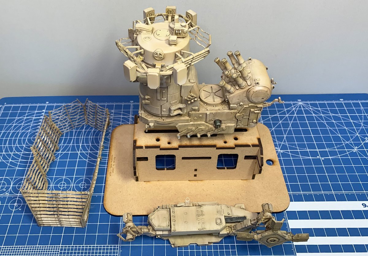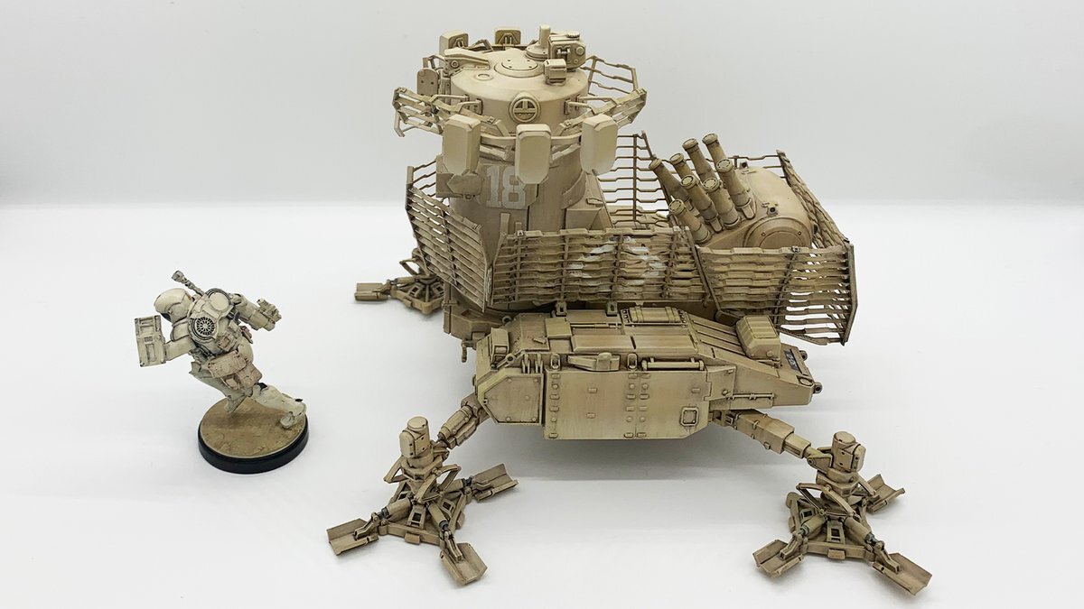 再販の1/35スケール 戦車型無人兵器 ゴンクについてです。 スラットアーマーを外すとこんな感じになってます。 組み立てや塗装の際の参考にしてくださいませ~。 それと、同スケールのプロテクションスーツが1体付属します。 #WF2023S #武器よさらば pic.x.com/q1cyP5FbHC
