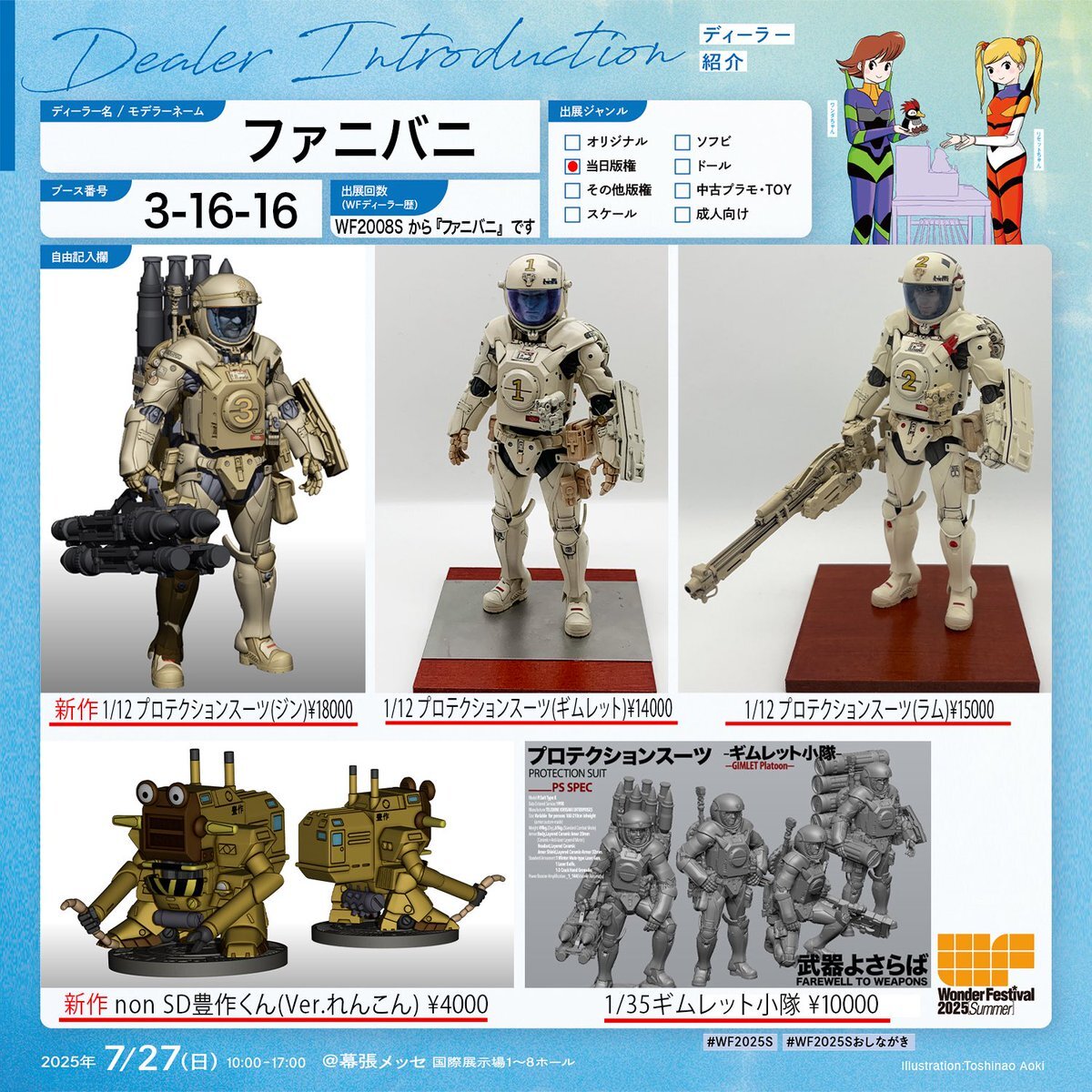 ワンフェス2025夏のお品書きです! 新作は1/12スケール プロテクションスーツ(ジン)とSD豊作くんです。 ジンのランチャーはボリュームがあり、ちょっとお高くなってしまいました。 SD豊作くんは全パーツ3Dプリンター出力品ですー。 #WF2025S #武器よさらば #パトレイバー #パトレイバー模型部 pic.x.com/WSUWJuqXOo