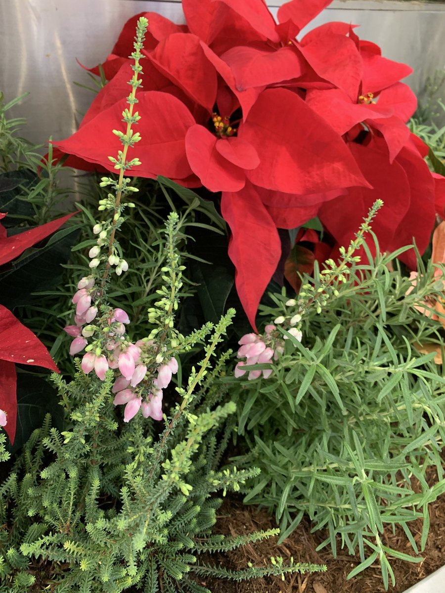 #今朝の狭庭 沈丁花が花芽をつけました♪これから結構長い冬を過ごして咲きます。これだけでは寂しいので、デパートのウェルカムフラワーを!🎄 冬空をいま青く塗る画家羨し by中村草田男 #俳句 #ガーデニング #武器より花を #ポインセチア pic.x.com/sF6uH62iJf