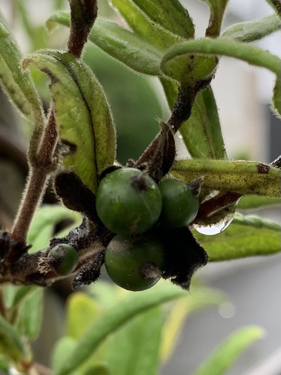 #今朝の狭庭 は冷たい雨 #忍冬 スイカズラの実は青黒くて地味。実で増やさなくてもどんどん蔓延これる強み!?歌のフレーズに 忍ぶという字は難しい 心に刃を乗せるのね 時々心がいたむのは 刃が暴れるせいなのね いとしい花なら忍冬(スイカズラ) by因幡晃 #ガーデニング #武器より花を #NoWar pic.x.com/PRoL3VLAmg