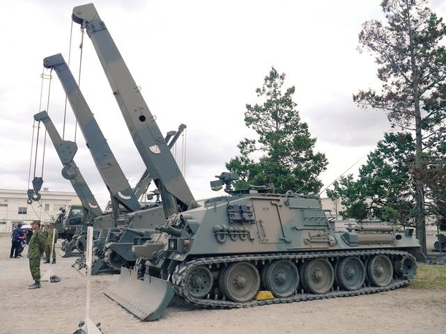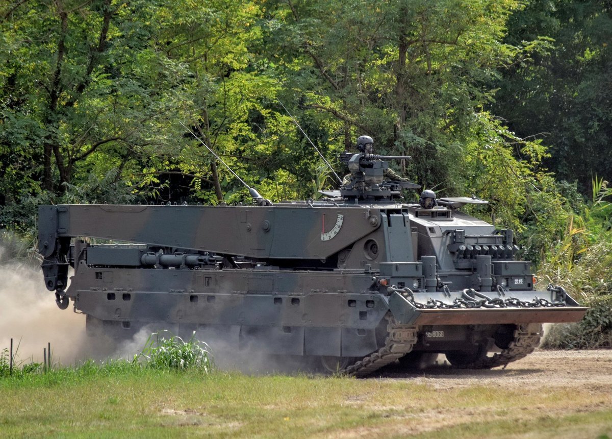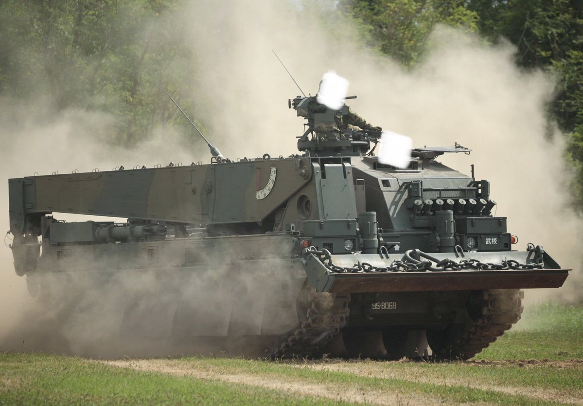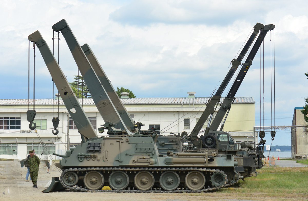 【90式戦車回収車(90TKR)】 ほとんどが第7師団(北海道)に配備されており、関東ではレアなヤツ😎 横に扉がついており、回収操作を行う隊員はここから出入りするそうです(3枚目) #土浦駐屯地 #武器学校 pic.x.com/qbo1xxDtiE