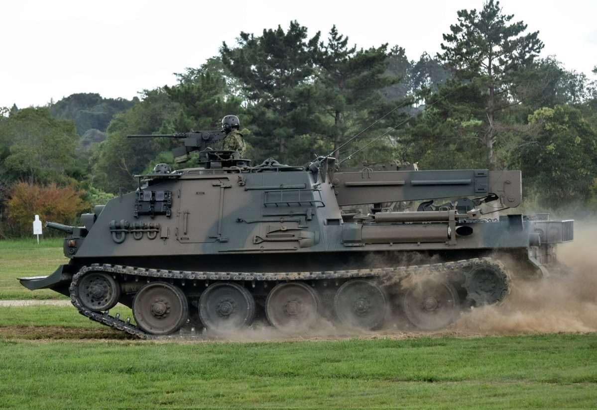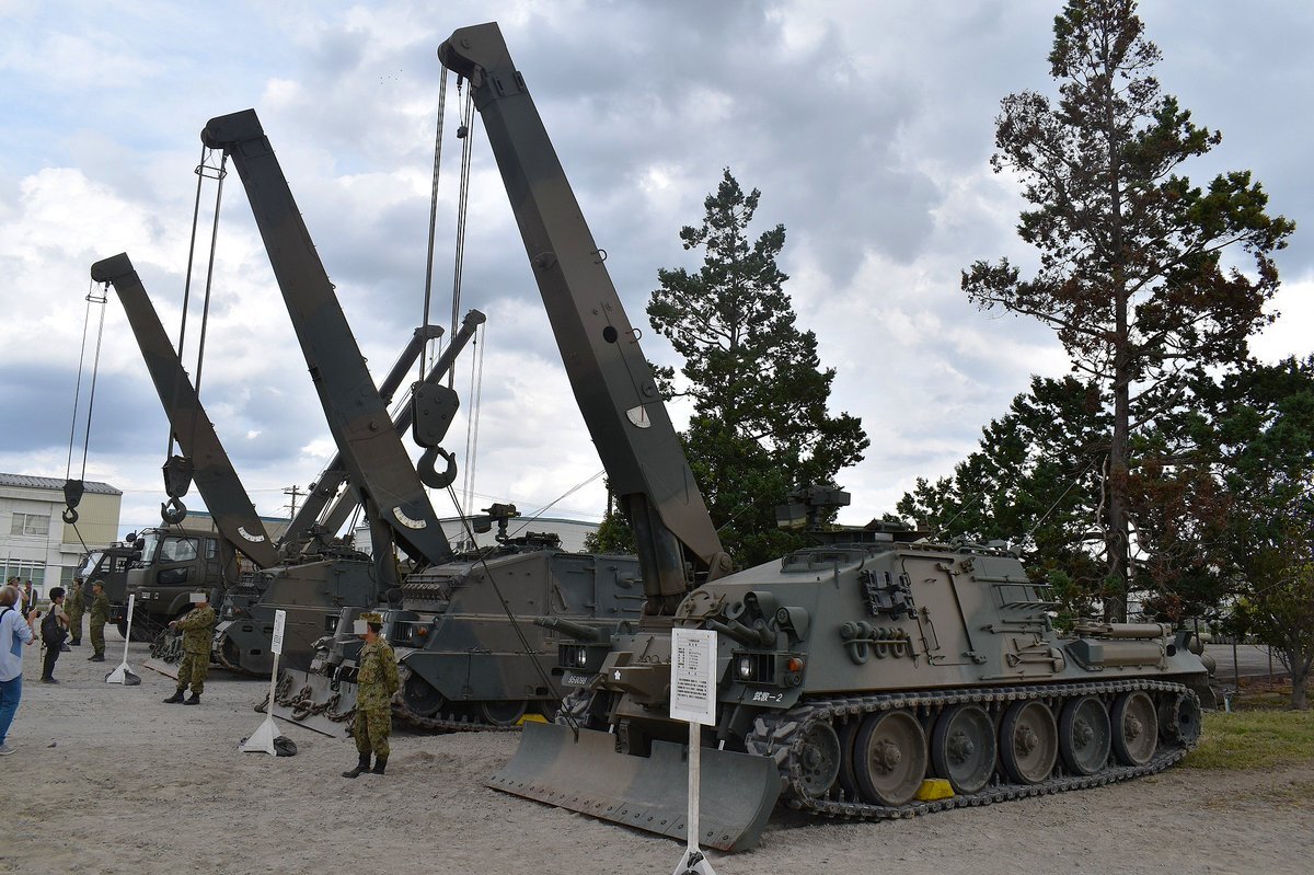 【78式戦車回収車(78SR)】 戦場のJAFこと78SR😂 現時点で退役の情報はないものの、年式的にそろそろ限界かもしれない。 #土浦駐屯地 #武器学校 pic.x.com/O32ZsLkeYr