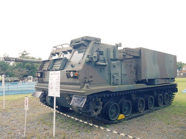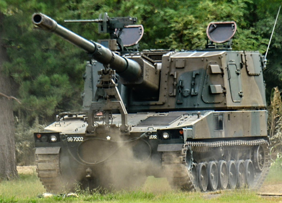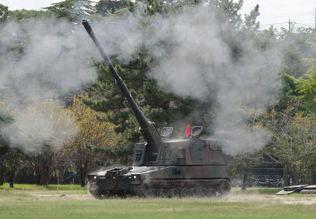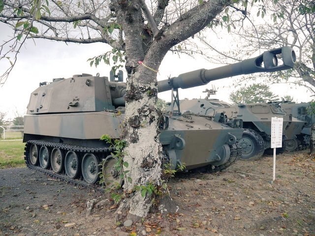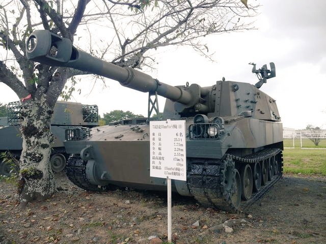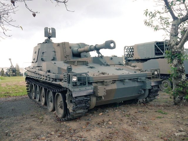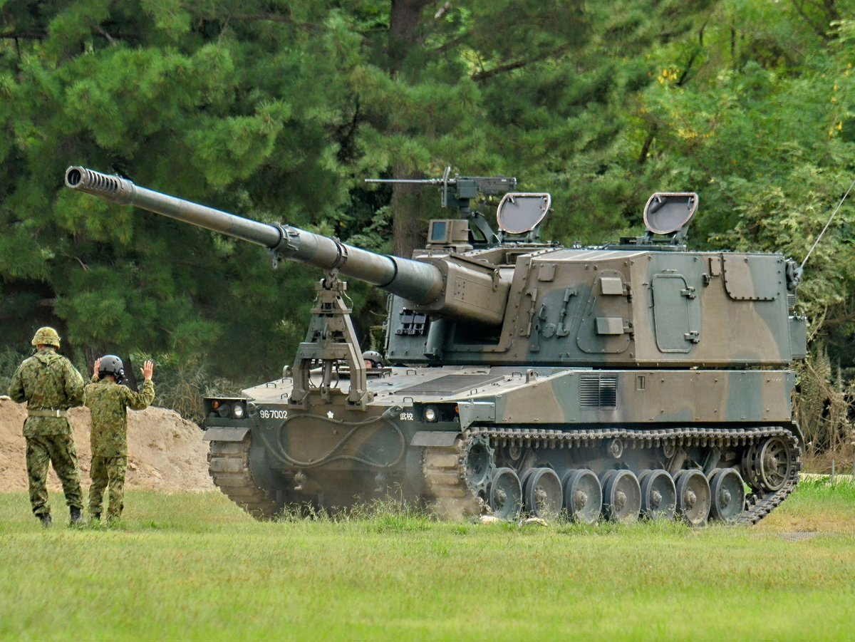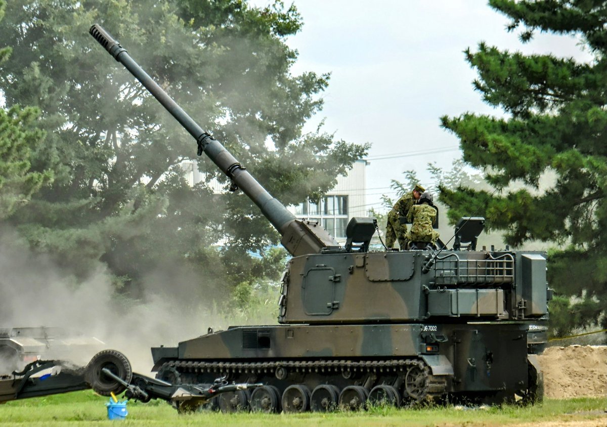 【99式15榴】 機動力に優れる19HSPに代替されているが、ウクライナ戦争でこの手の兵器(AS-90など)が再評価、高機動ロケット砲システムと組み合わせ、補完し合う運用が注目されています🫡 #土浦駐屯地 #武器学校 pic.x.com/XFP2rNVGS0