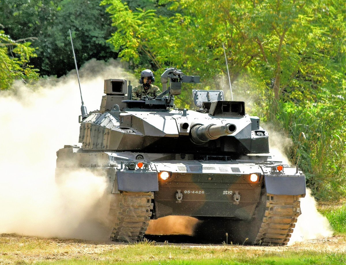 【90式戦車】 ナナヨンの2倍のパワー、2サイクルディーゼルの咆哮が物々しい🤔 #土浦駐屯地 #武器学校 pic.x.com/YCEzFmAaim