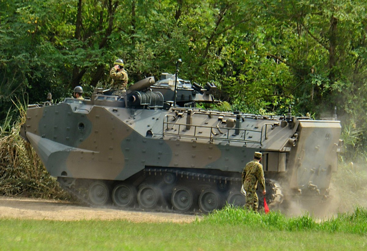 【AAV7-4号機】 武器学校にも訓練用に配備されていたんですね。去年は展示されなかったので感激です🥰 それにしても、コレが水に浮くのは信じ難い… #土浦駐屯地 #武器学校 pic.x.com/hfFzbBMwKB
