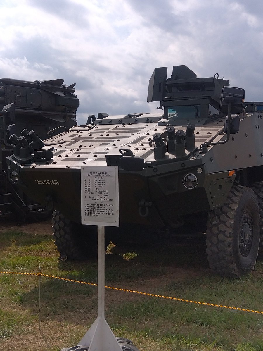 AMVの全景と細部。 1枚目の画像の隊員と比べるとAMVが如何に巨大か分かる #武器学校 #土浦駐屯地 pic.x.com/ACdfCMKLsU