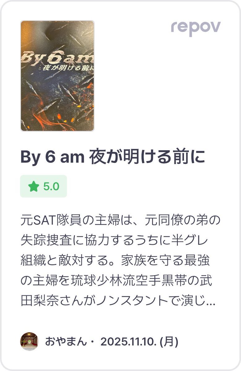 元SAT隊員の主婦が、家族を守る為に半グレ集団を体術のみでボコボコにしていくノンストップクライムアクション。琉球少林流空手黒帯の武田梨奈さんの美しいハイキック、多彩な前蹴りに見とれる。76分では足りない!もっと見せてくれ!続編、ドラマ化はよ! repov.me/ja/record?id=6… #by6am #武田梨奈 pic.x.com/eZdflOuUfC