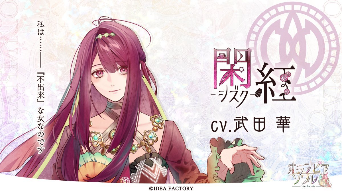 ☀ 登場人物情報 ☀  ̄ ̄ ̄ ̄ ̄ ̄ ̄ ̄ ̄ 閑紅 シズク CV: #武田華 菖愁の後見役 ▽ 公式サイト ▽ otomate.jp/olympia/cathar… #オラソワ #Olympiasoiree #オトメイト #Otomate pic.x.com/jychBoInsV
