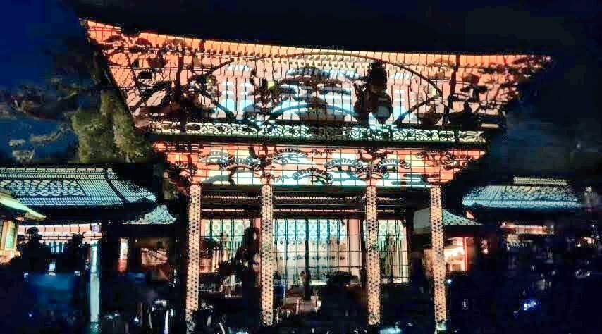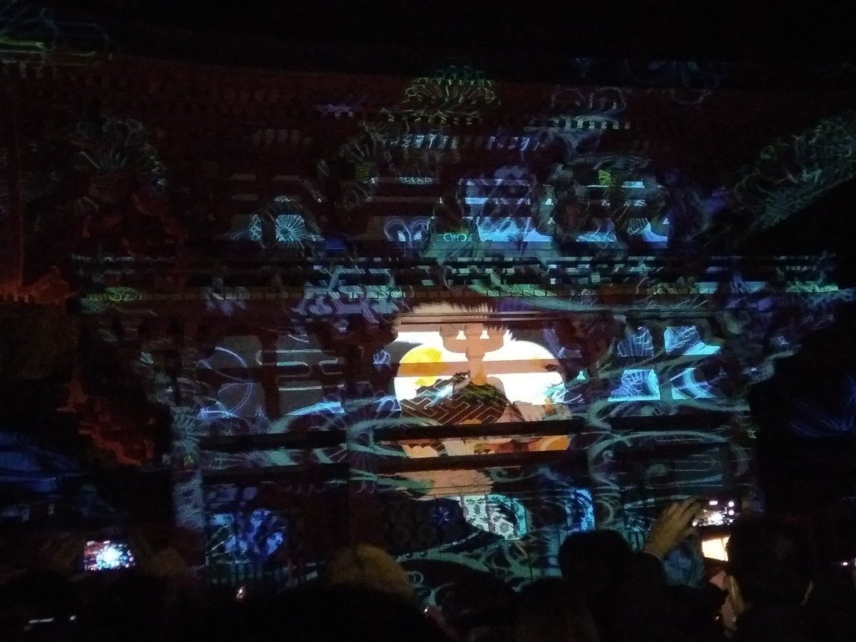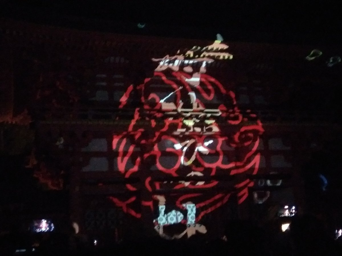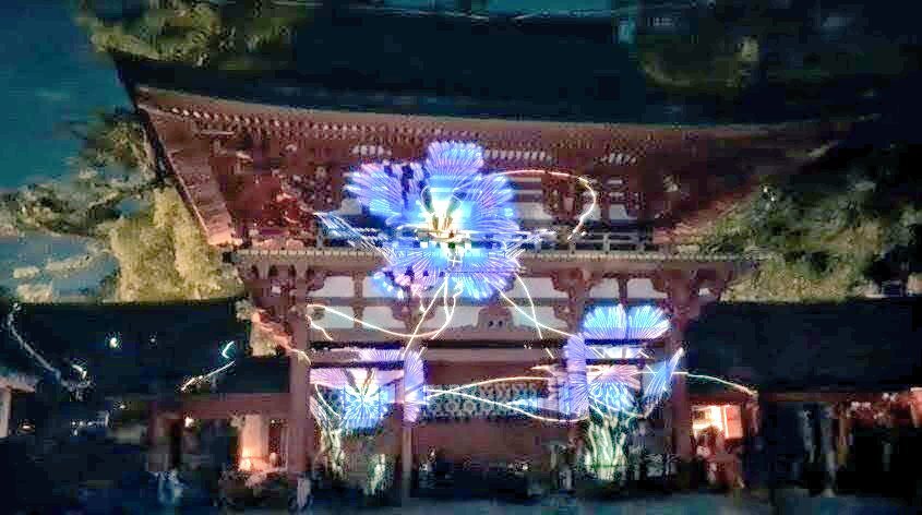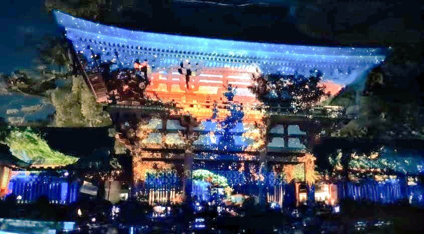 氷川神社でプロジェクションマッピングやってるようで 盆栽村100周年記念のライトアップとか? メインが桜門での7分間の投影! なかなか見応えあったー #武蔵一宮氷川神社 pic.x.com/1NNMAFsCaE