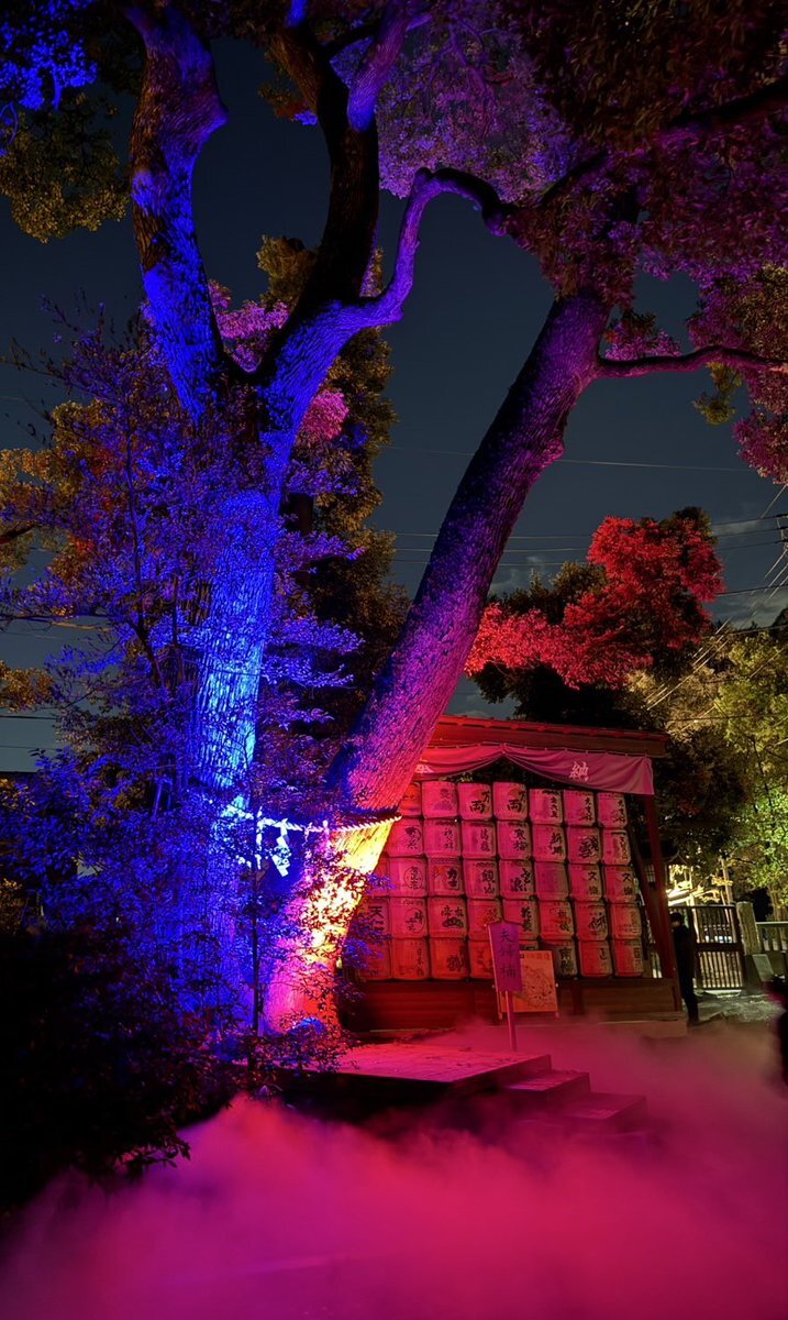 ライトアップされた三の鳥居⛩️をくぐると、樹木🌳にもプレジェクションマッピング! 煙の演出も幻想的です💗 2025年11月8日〜11月24日 月〜木:17:30〜20:00(最終入場時間:19:30) 金土日祝:17:30〜21:00(最終入場時間:20:30) #武蔵一宮氷川神社 #大宮氷川神社 #プロジェクションマッピング pic.x.com/BMZHBCfjTB