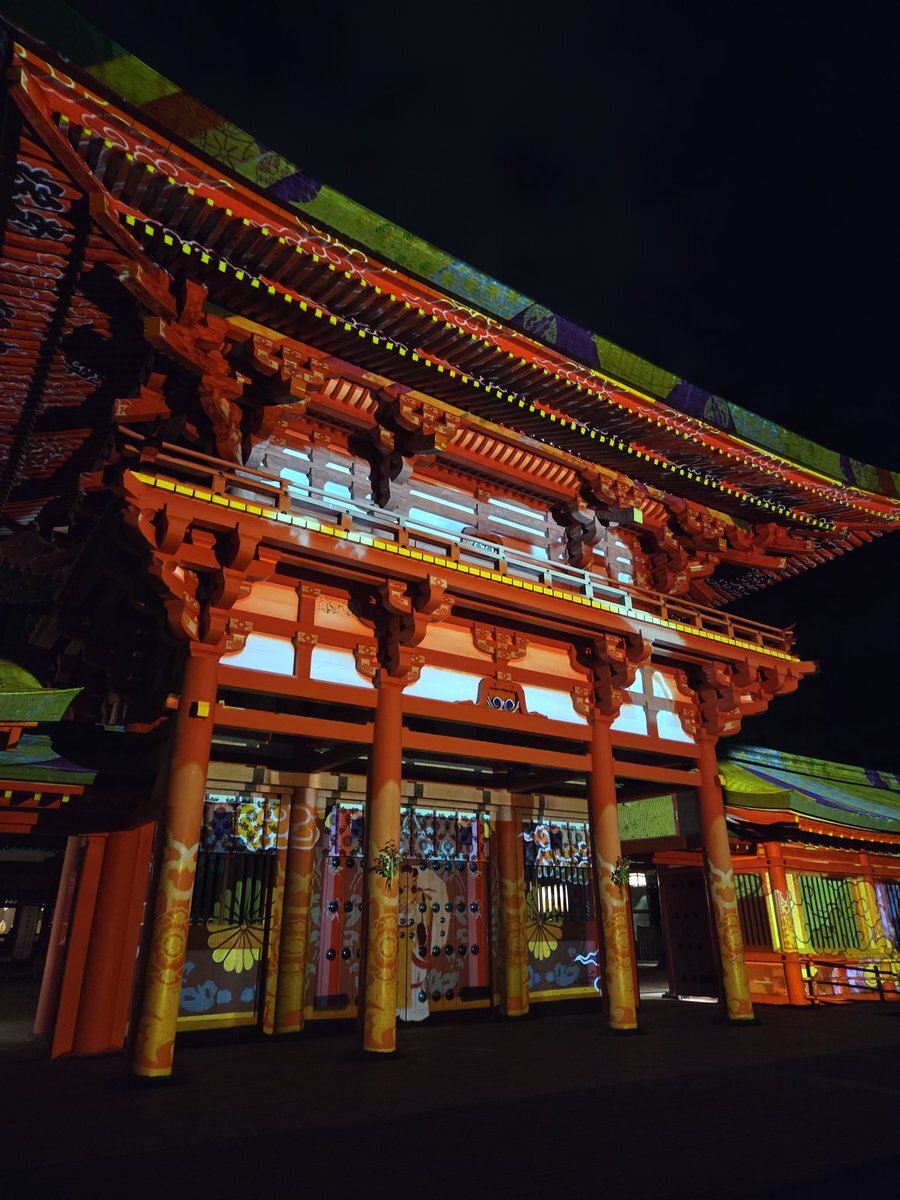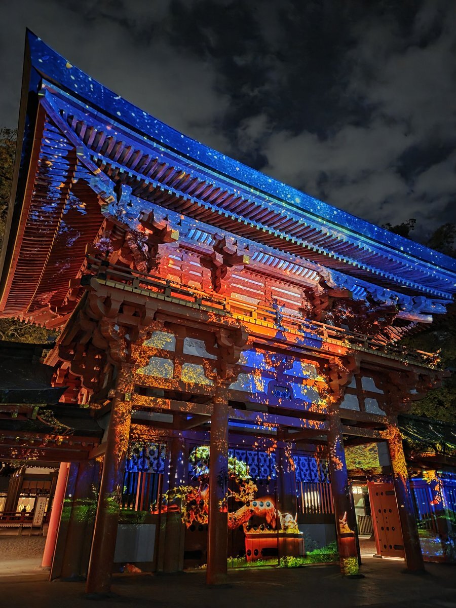 #武蔵一宮氷川神社 のプロジェクションマッピング見て来ました テーマは #時結びの杜 楼門に映し出される映像は壮大で圧巻❣️ 11月24日まで開催中 お近くの方は是非😊 #大宮氷川神社 pic.x.com/C5AC9KekhU