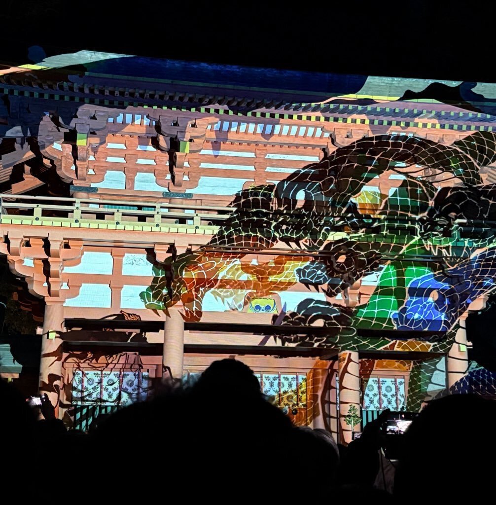 大宮の氷川神社でプロジェクションマッピングやってるって聞いて見に行ったけど、なかなか綺麗で良かった✨️ #時結びの杜 #武蔵一宮氷川神社 #大宮盆栽村100周年 pic.x.com/CHzf3hiiYH