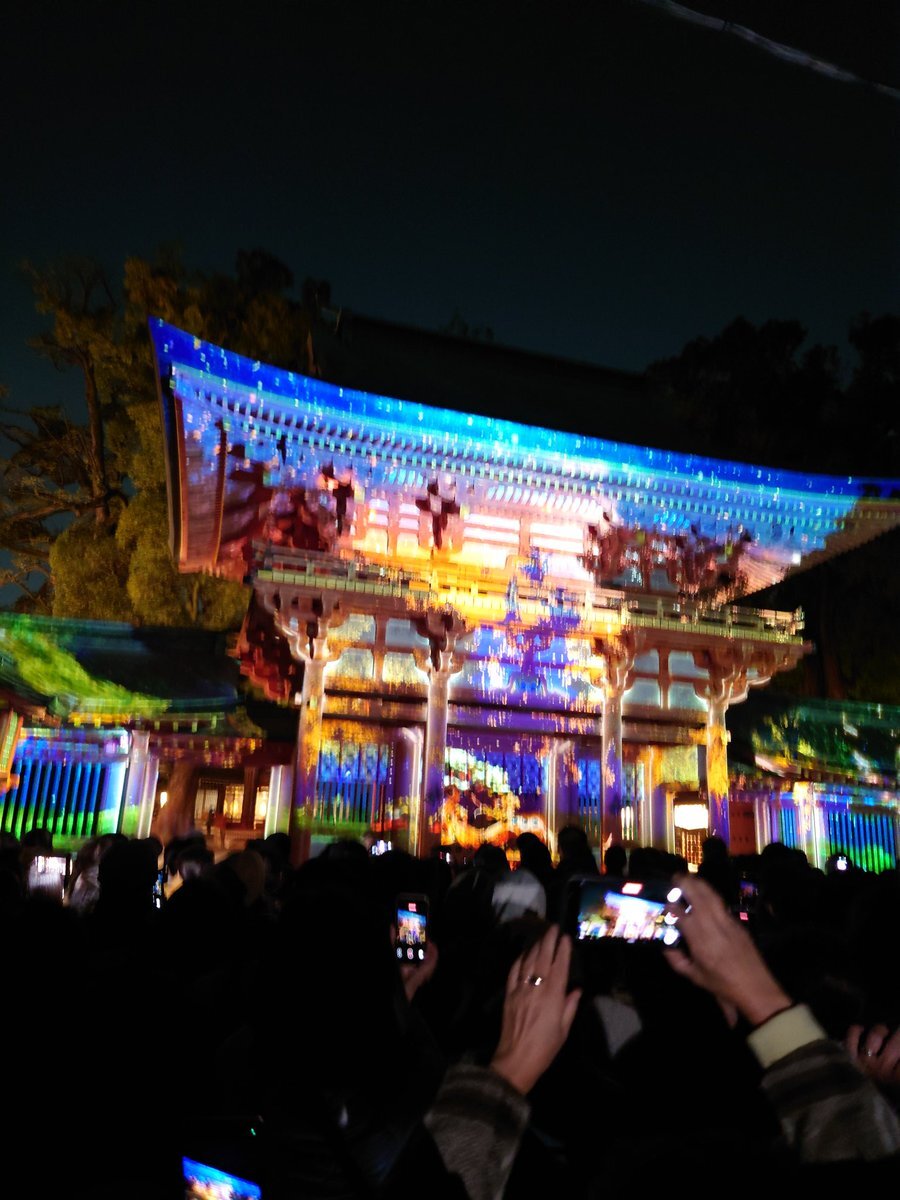 大宮盆栽村100周年㊗️ 武蔵一宮氷川神社の プロジェクションマッピング⛩️🌈✨️ 我が家も見てきました😊❇️ 光の演出、圧巻でした⛩️👏✨️ #大宮 #氷川神社 #武蔵一宮氷川神社 #プロジェクションマッピング pic.x.com/0MFjenWoPP