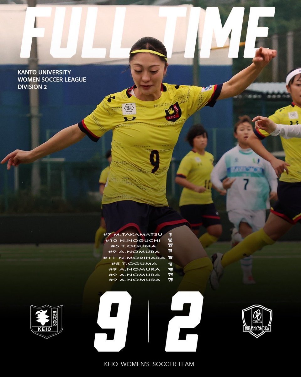 【試合結果】 関東大学女子サッカー2部リーグ後期8節 #慶應義塾大学 9-2 #武蔵丘短期大学 〜注目選手のコメント〜 今節は、大量得点をして勝ちきることが出来ました。 次節では今週出た課題をしっかり改善し、勝利して優勝します。 応援よろしくお願いします。 (#12中村美桜pic.x.com/xP8Vk1kZdj