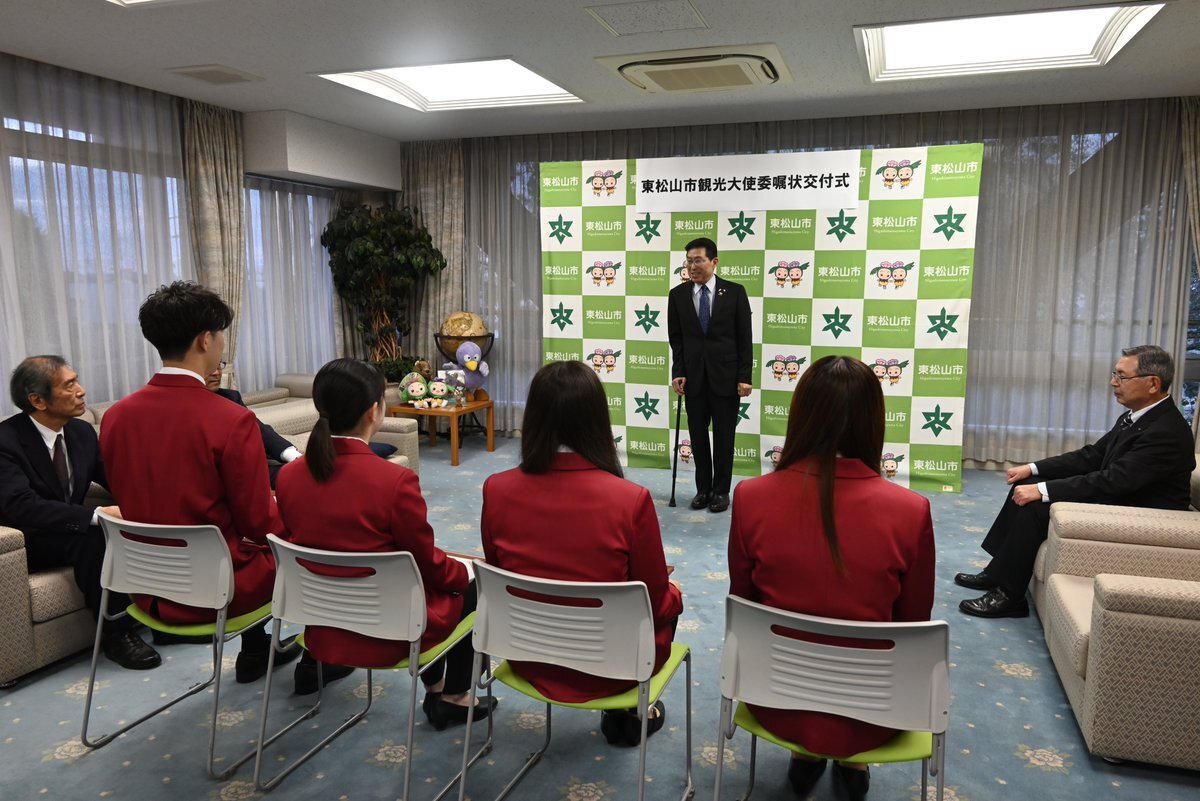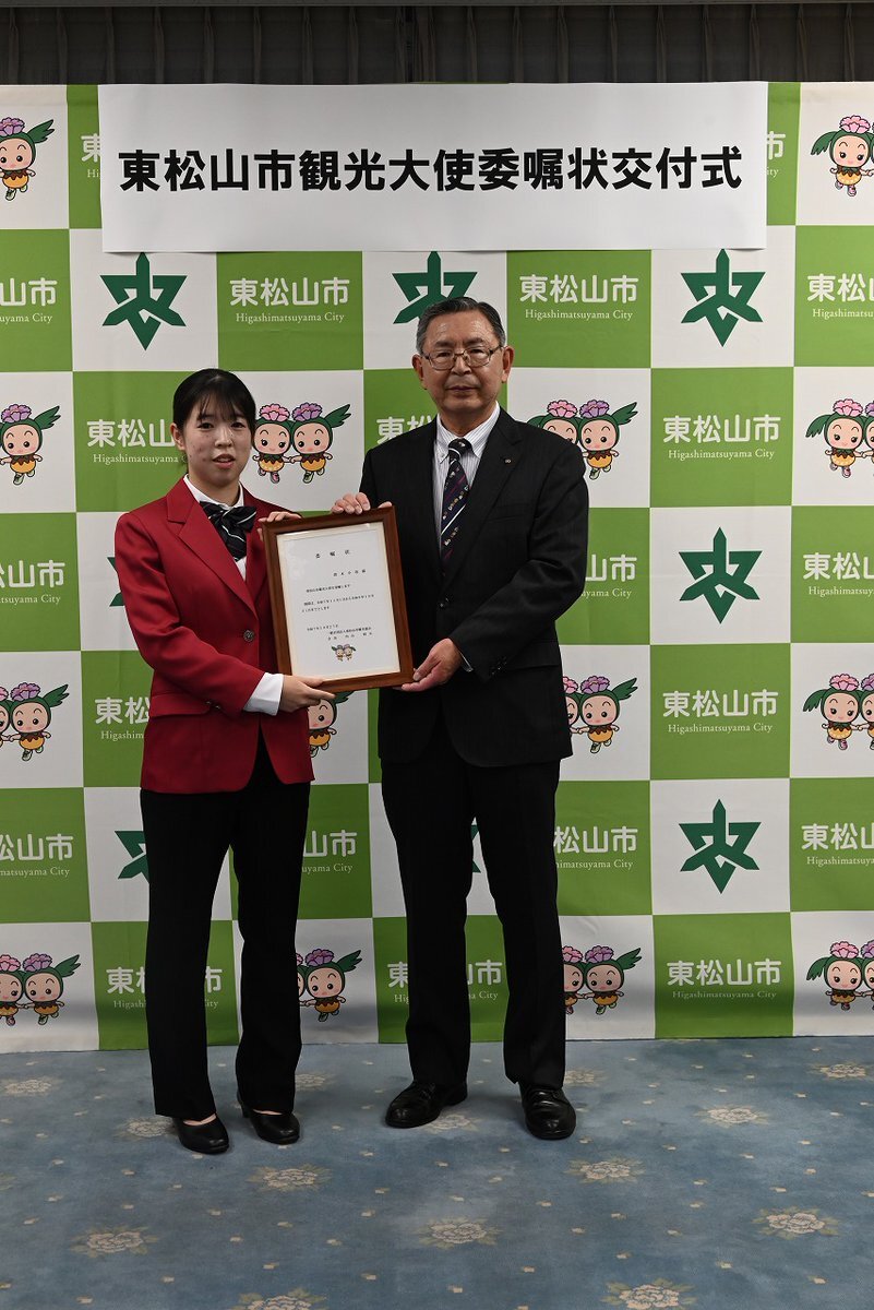 新観光大使を委嘱しました。 今週末の #日本スリーデーマーチ にてデビューです! よろしくお願いいたします。 higashimatsuyama-kanko.com #東松山 #東松山市観光大使 #大東文化大学 #武蔵丘短期大学 pic.x.com/cMUlxO5KQY