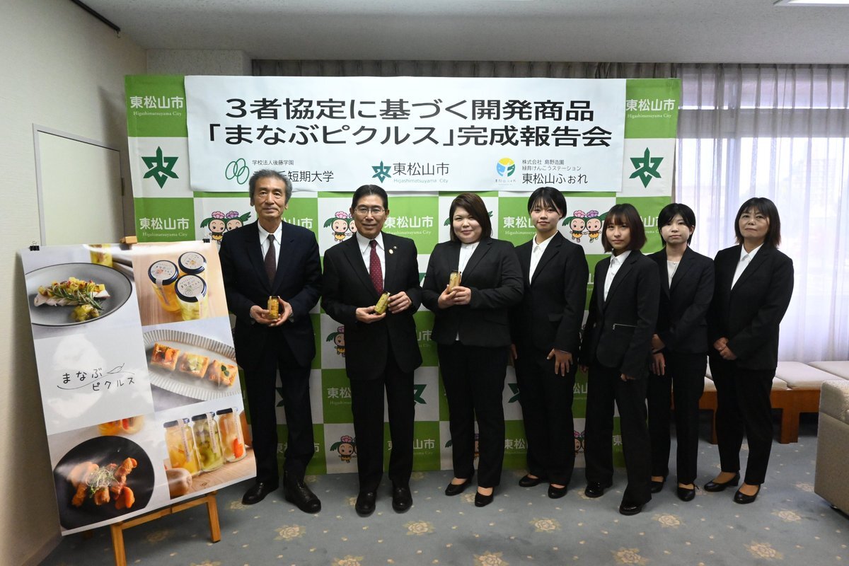 11月6日(木)に #東松山ふぉれ#武蔵丘短期大学 と締結した協定に基づく商品開発完成報告会が開催されました。学生のアイディアが詰まった新商品「まなぶピクルス」は、#武蔵丘祭#東松山産業祭#農商工連携フェア で展示、販売されます。 #東松山 #まなぶピクルス city.higashimatsuyama.lg.jp/soshiki/3/4727… pic.x.com/5IPo4Ez9BO