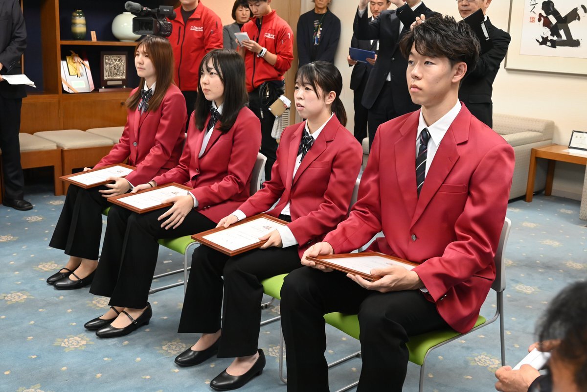 【東松山市 #観光大使 に新たに4名委嘱!】 10月27日(月)に #大東文化大学#武蔵丘短期大学 でスポーツや栄養学などで目標に向かってチャレンジする若くてエネルギッシュな4名の学生を、新たな東松山市観光大使として委嘱しました!今後、イベント等で市の魅力をPRしてくれます。 #東松山市 pic.x.com/ykM5xI0c1L