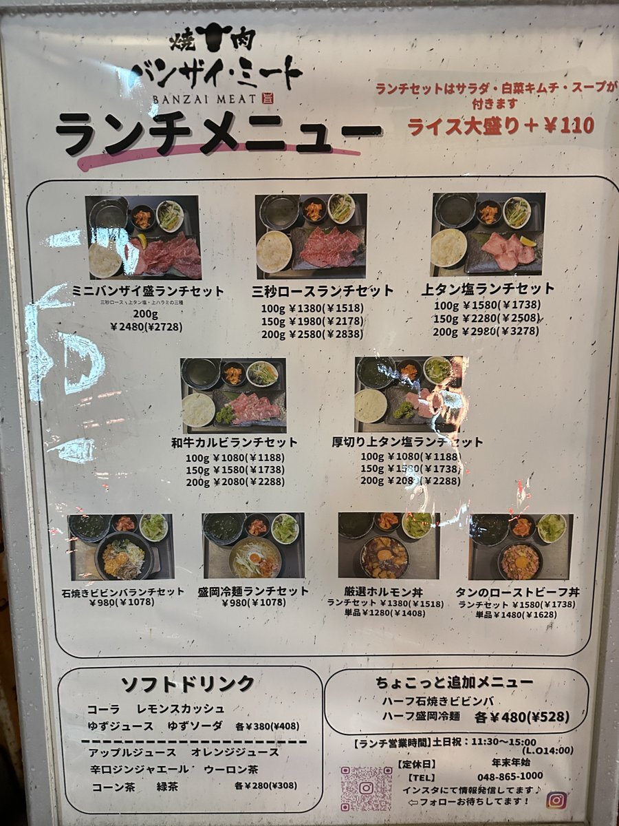 武蔵浦和のバンザイミート ランチやってる!和牛カルビセット1050円