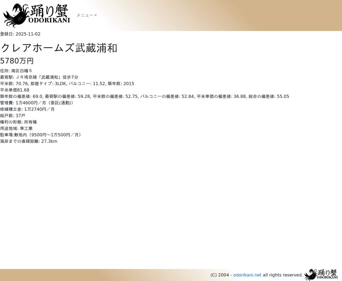 踊り蟹 - 偏差値60以上の不動産情報 bot / Real Estate Update bot@Odorikani