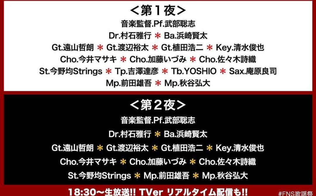 こちらもお忘れなく🙆🏻🙆🏻武部聡志音楽団の素晴らしい演奏も楽しみですね😊😊 #FNS歌謡祭 #武部聡志 #武部聡志音楽団 pic.x.com/GvP4sAJcy1