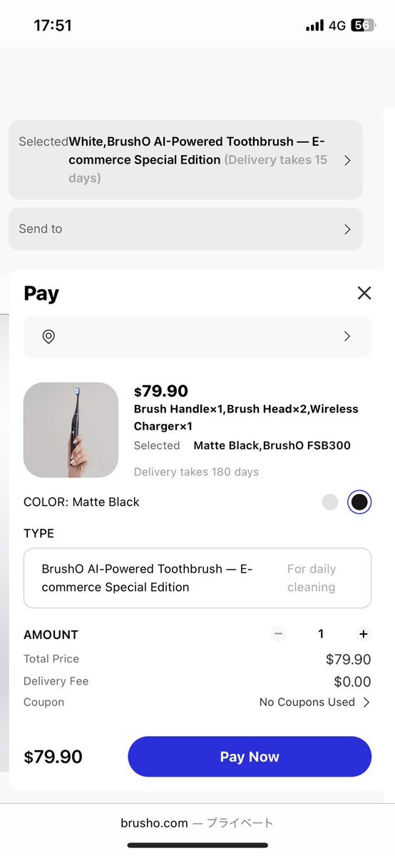 【BrushO ✖︎ セール終わり】 まだ返事待ちですが、どうやらゲリラセールは終わったようです🪥 黒の配送日が180日かかる点。また分かり次第報告しますd(^_^o) #brushO #歯磨き習慣 pic.x.com/ay9AlxF9eA x.com/brushonetwork/…